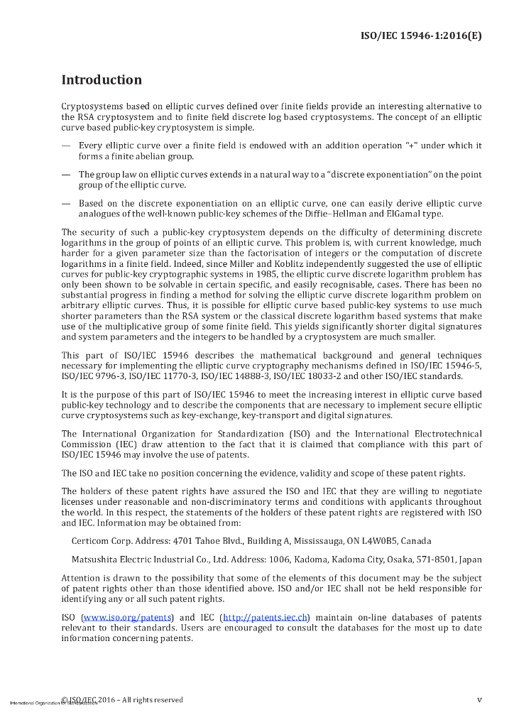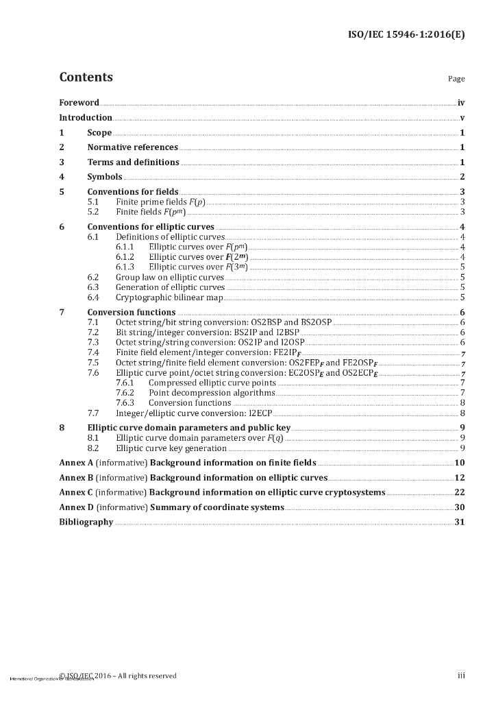 ISO/IEC 15946-1-2016 信息技术 安全技术 以椭圆曲线为基础的加密技术 第1部分:总则