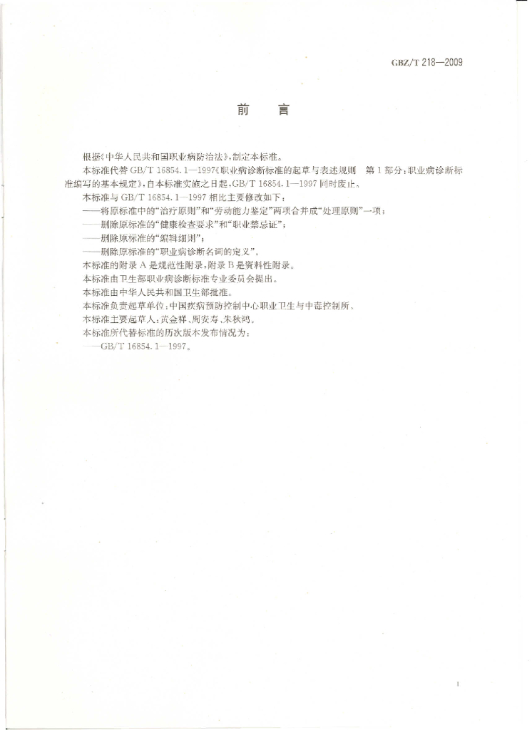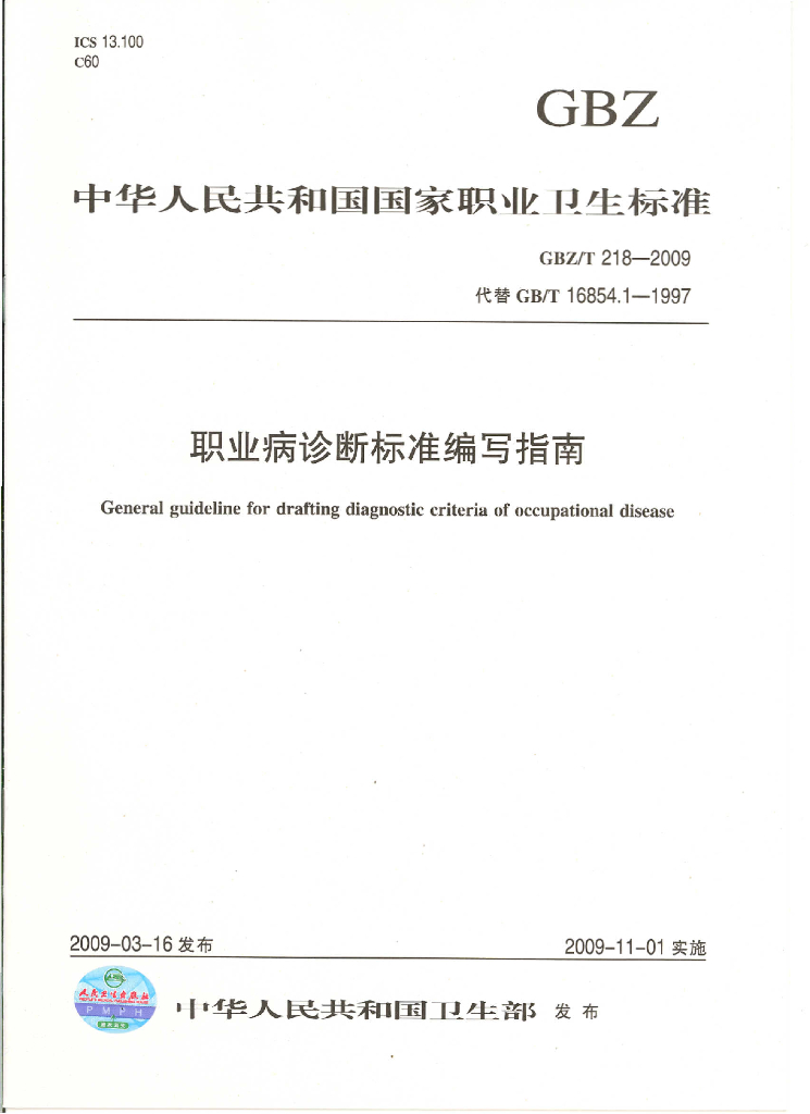GBZ/T 218-2009 职业病诊断标准编写指南