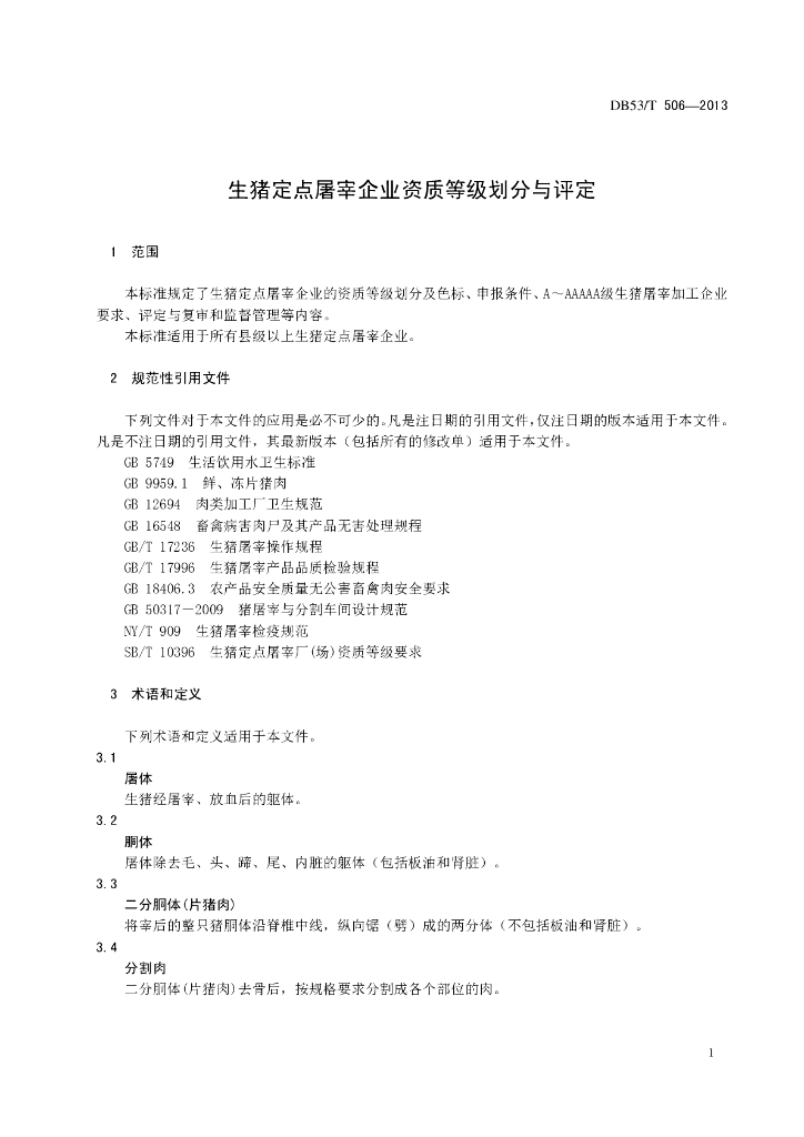 DB53/T 506-2013 生猪定点屠宰企业资质等级划分与评定