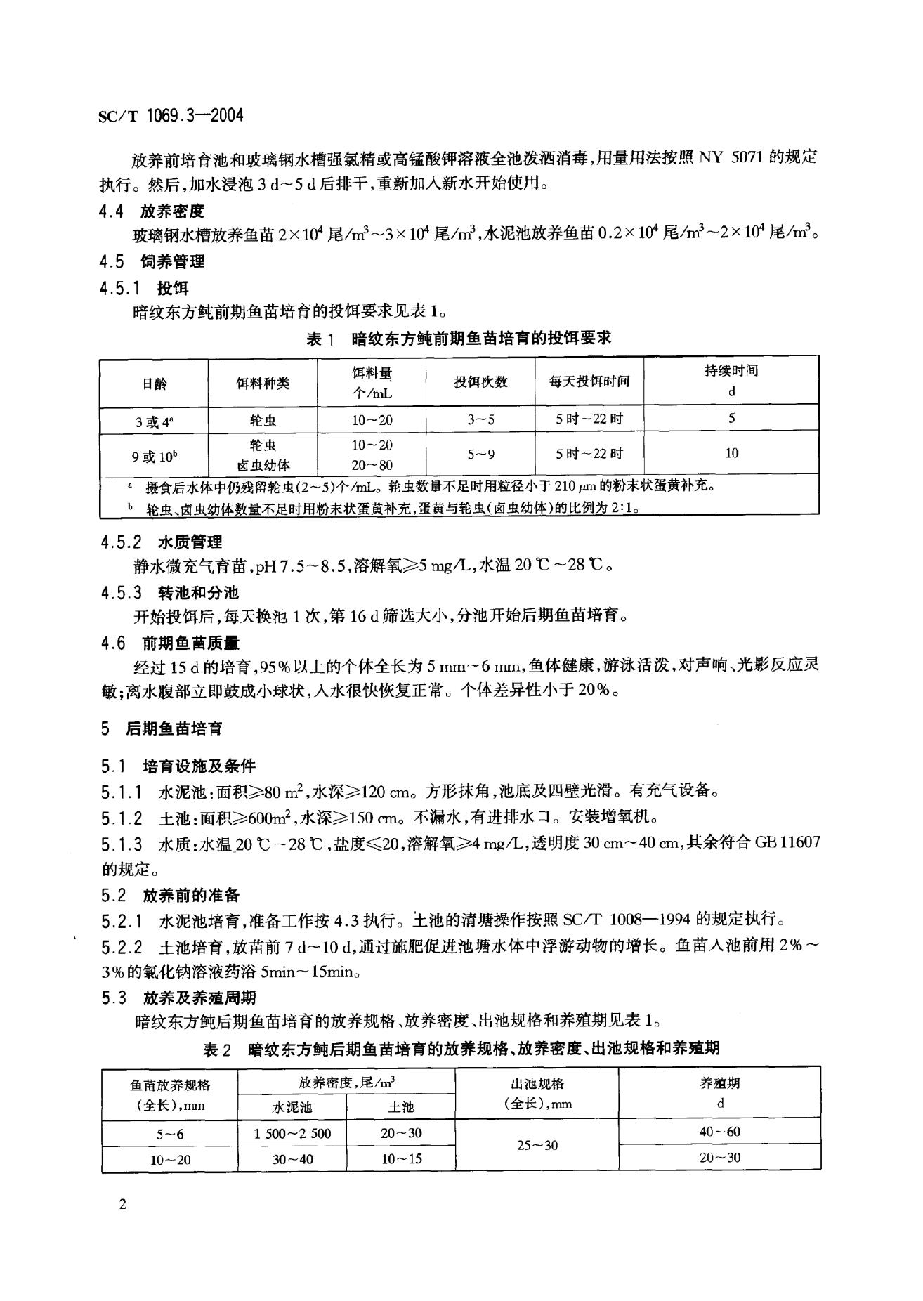 SC/T 1069.3-2004 暗纹东方鲀养殖技术规范 第3部分:鱼苗鱼种培育技术