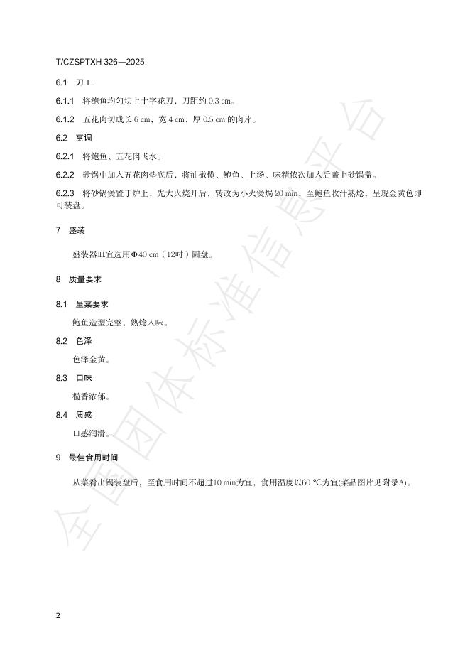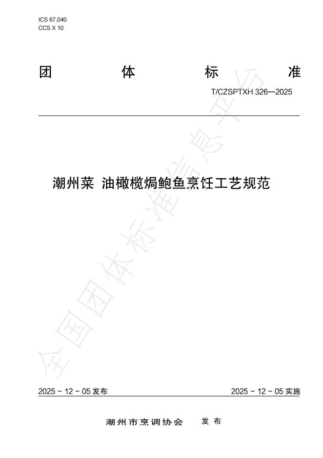 T/CZSPTXH 326-2025 潮州菜 油橄榄焗鲍鱼烹饪工艺规范