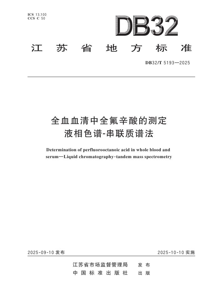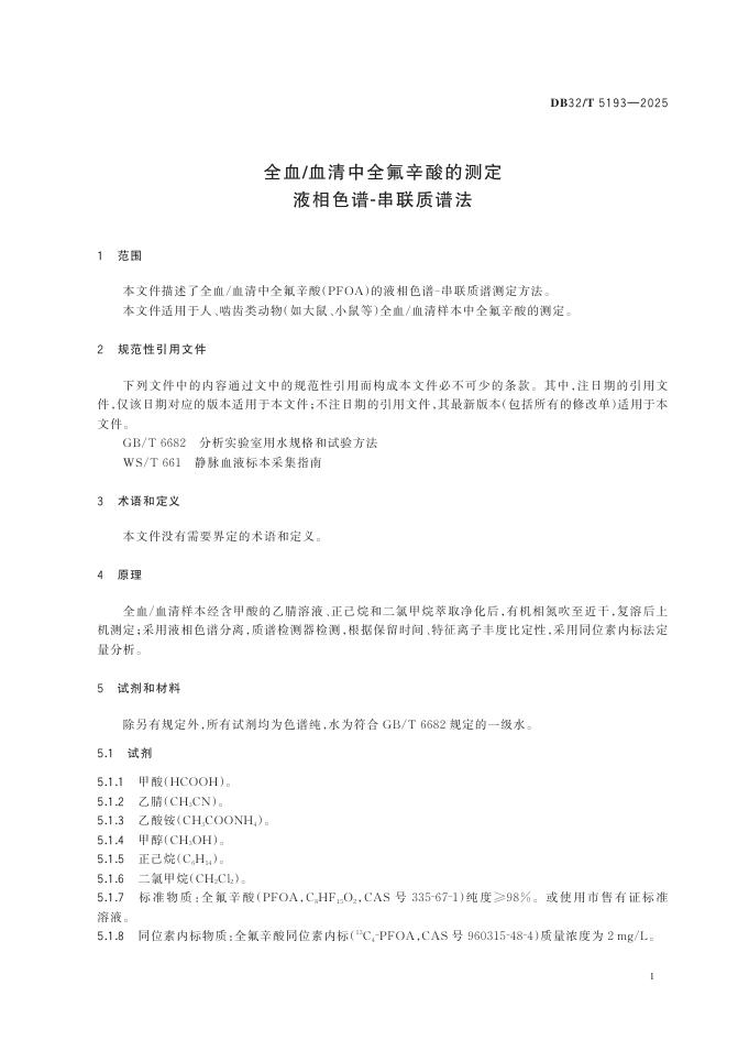 DB32/T 5193-2025 全血/血清中全氟辛酸的测定液相色谱串联质谱法