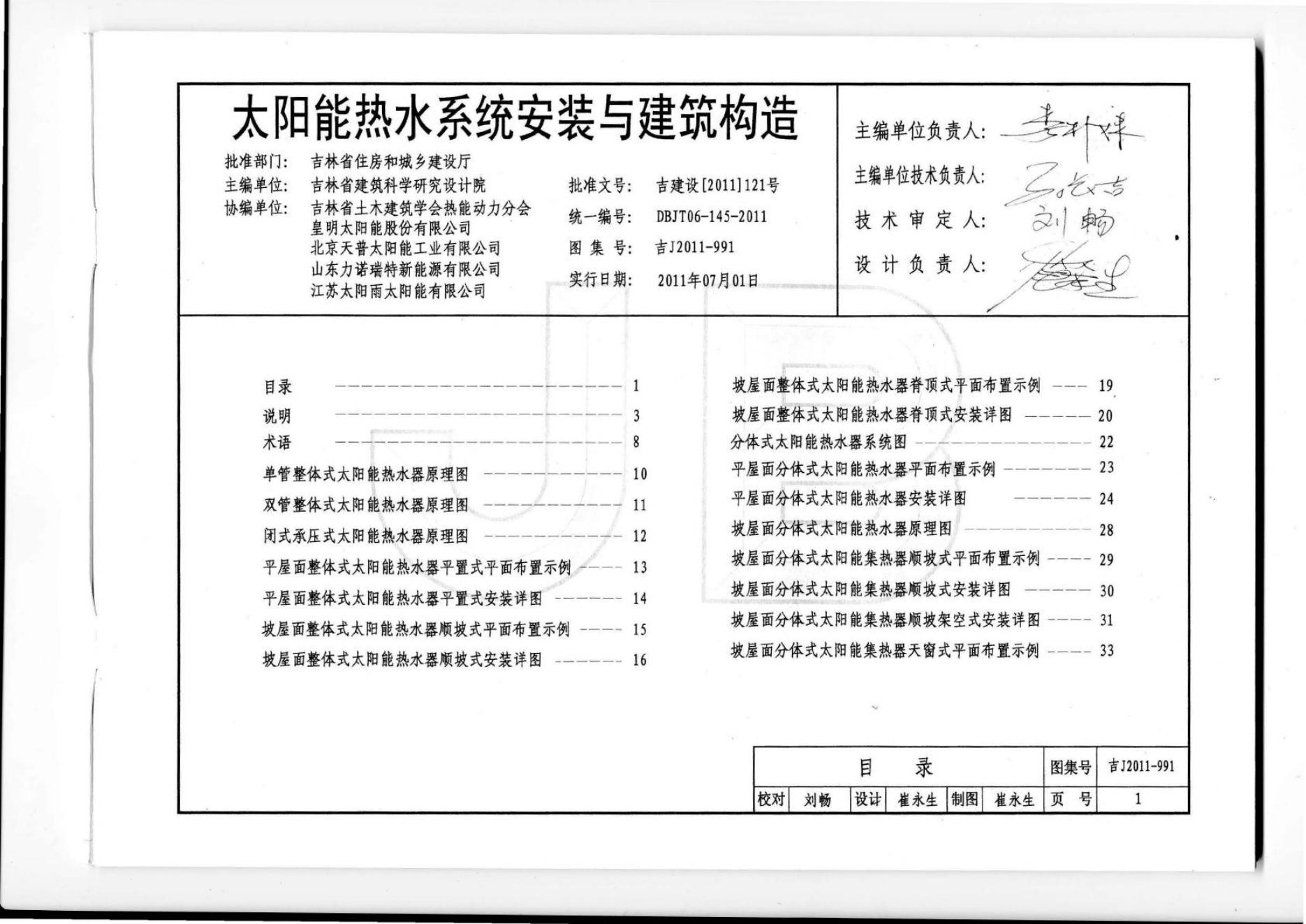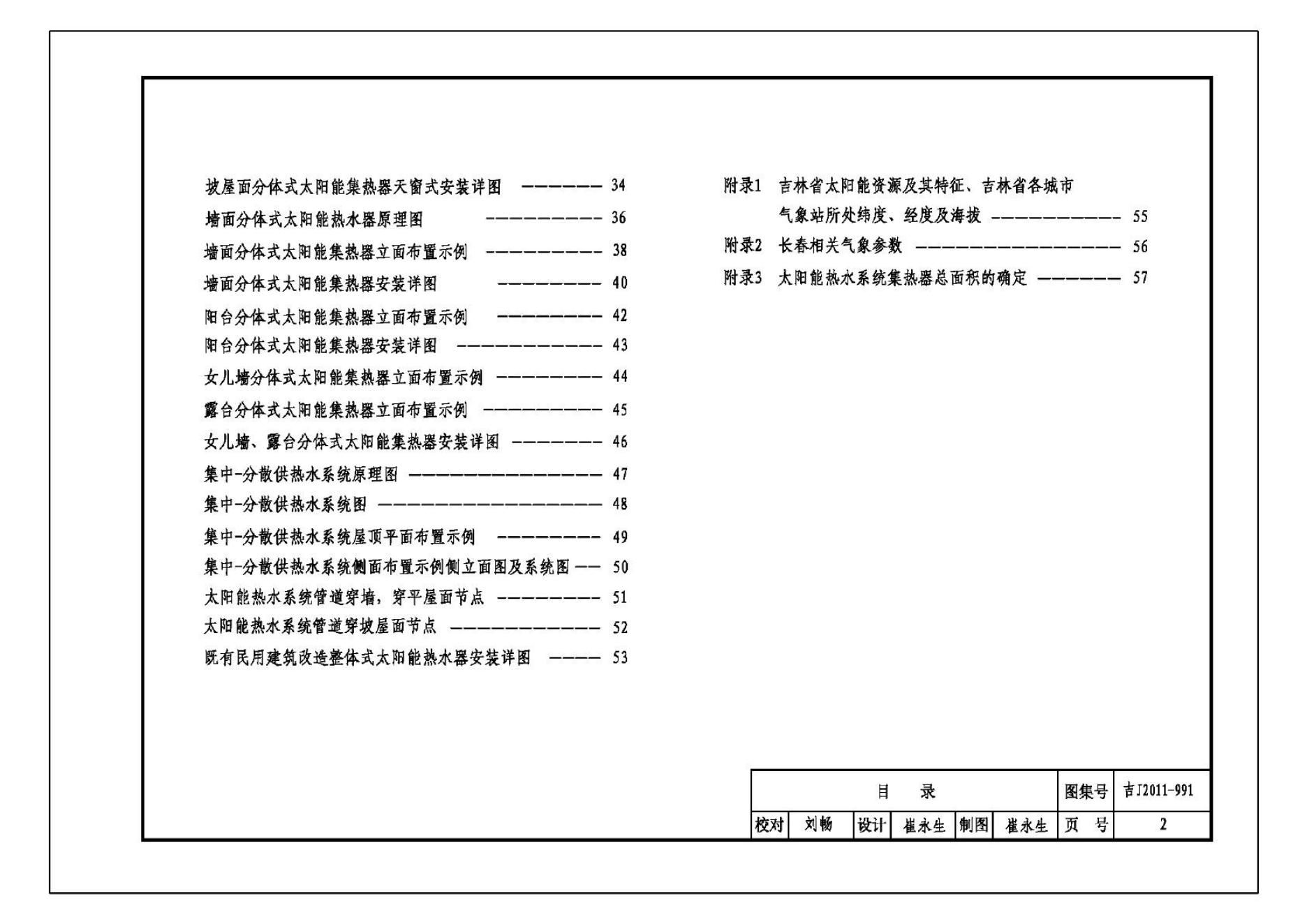 吉J2011-991 太阳能热水系统安装与建筑构造设计图集