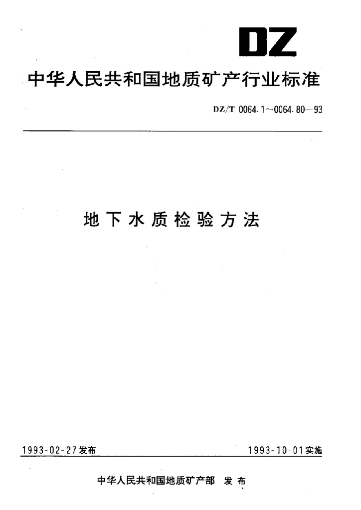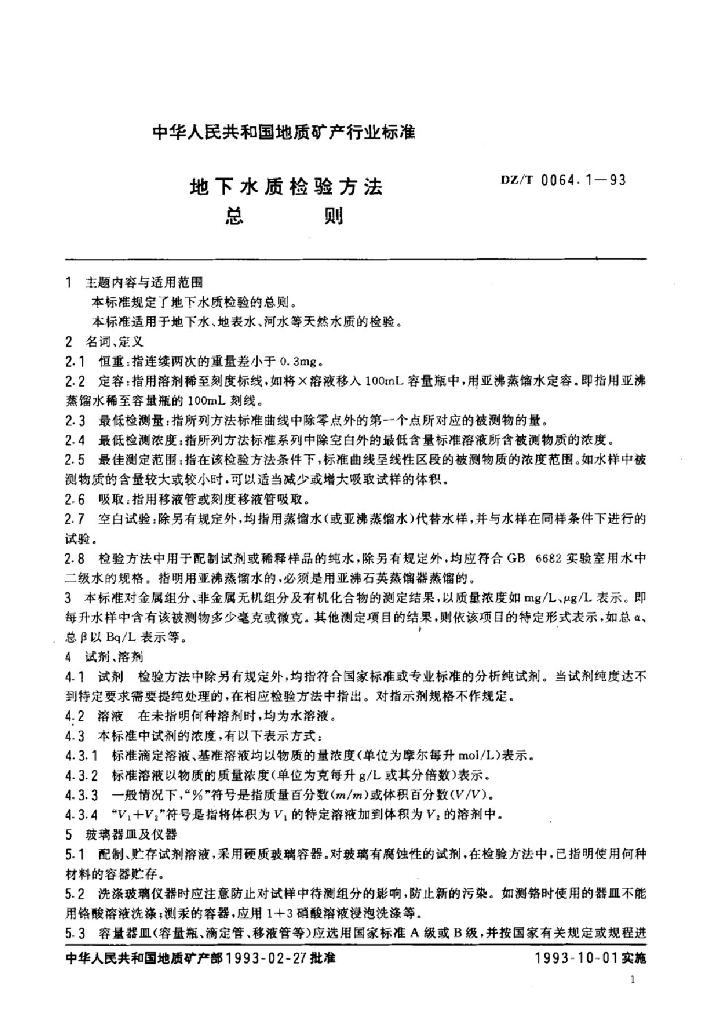 DZ/T 0064.1-1993 地下水质检验方法总则