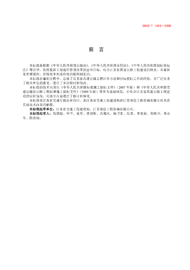 DB32/T 1553-2009 江苏省高速公路工程工程量清单计价规范