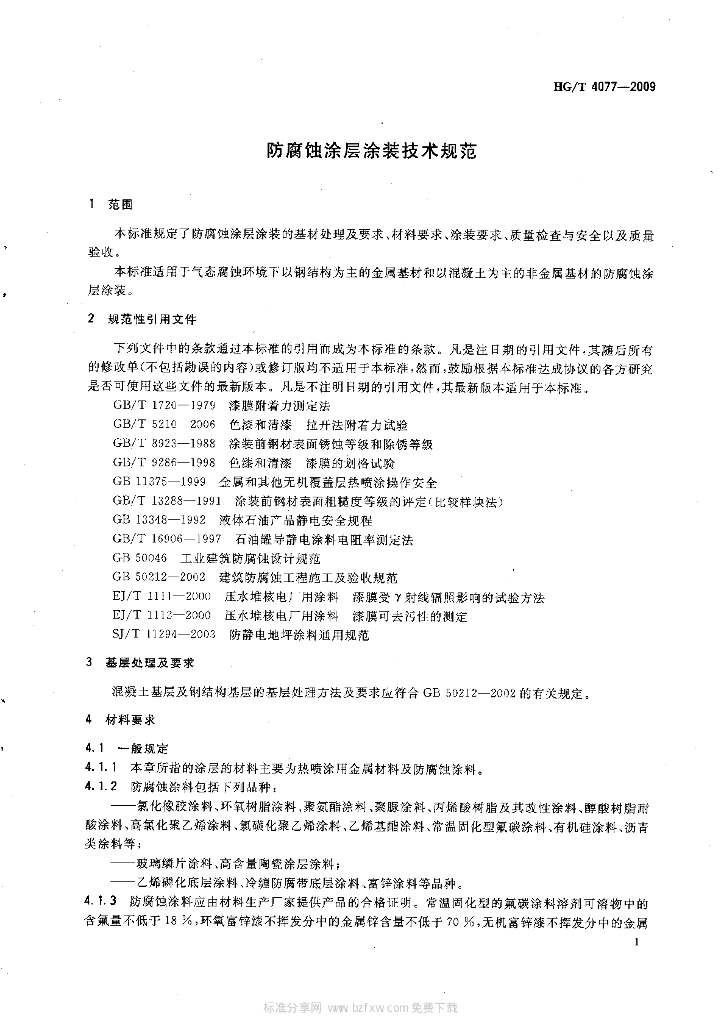 HG/T 4077-2009 防腐蚀涂层涂装技术规范