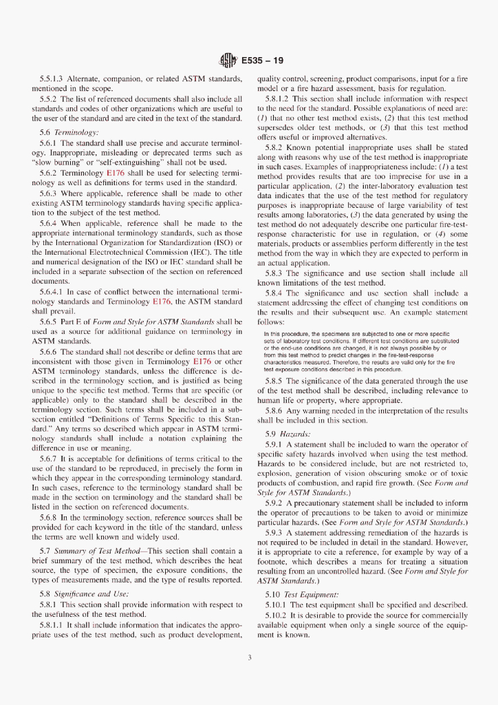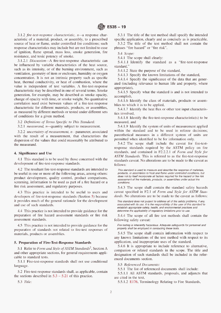 ASTM E535-19 Standard Practice for Preparation of Fire-Test-Response Standards