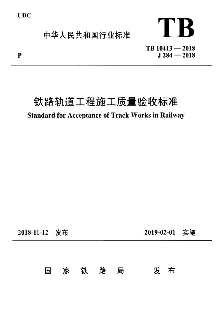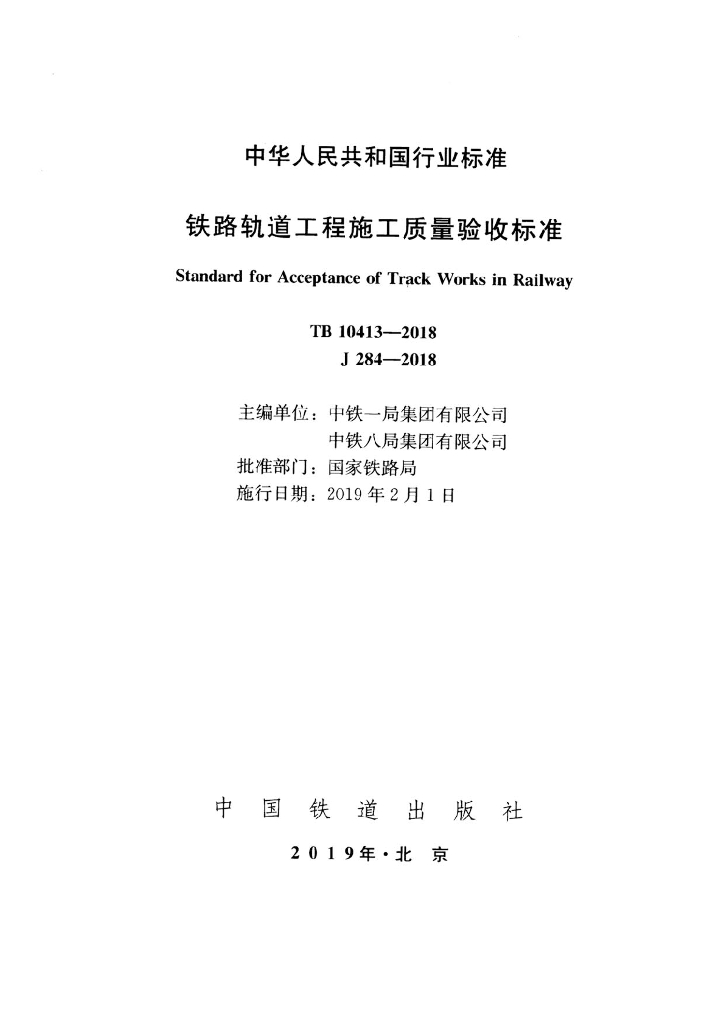 TB 10413-2018 铁路轨道工程施工质量验收标准