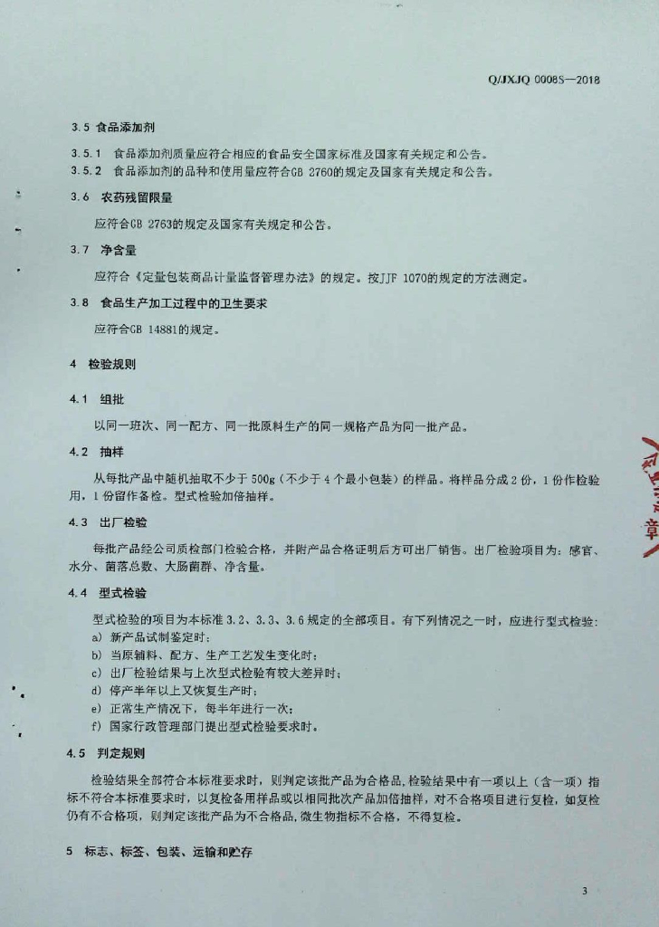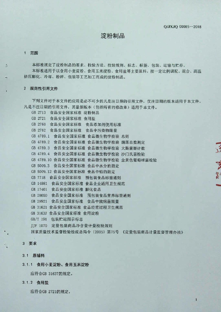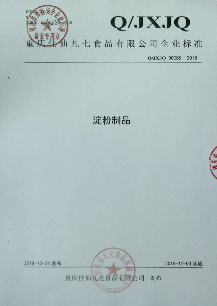 Q/JXJQ 0008S-2018 淀粉制品