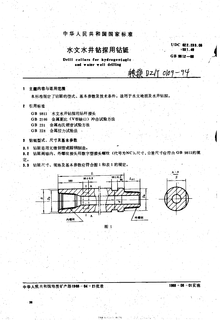DZ/T 0109-1994 水文水井钻探用钻铤