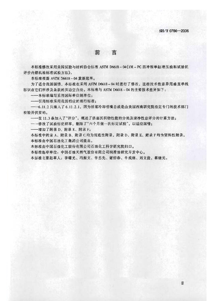 SH/T 0786-2006 柴油机油清净性评定法(开特皮勒1M-PC法)