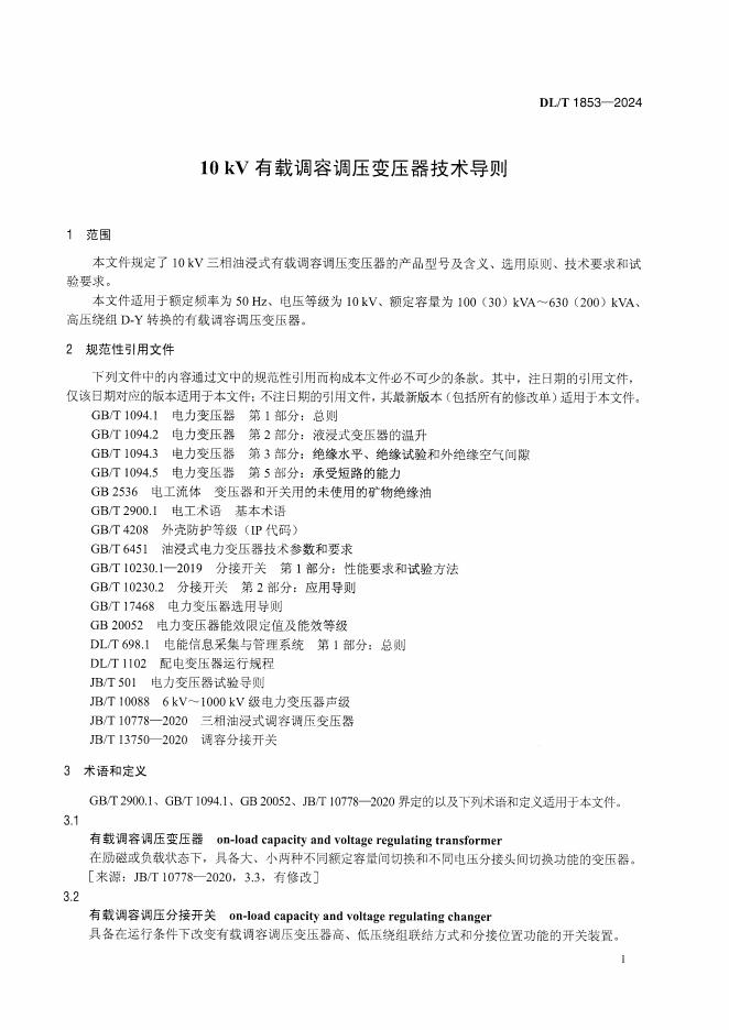 DL/T 1853-2024 10kV有载调容调压变压器技术导则