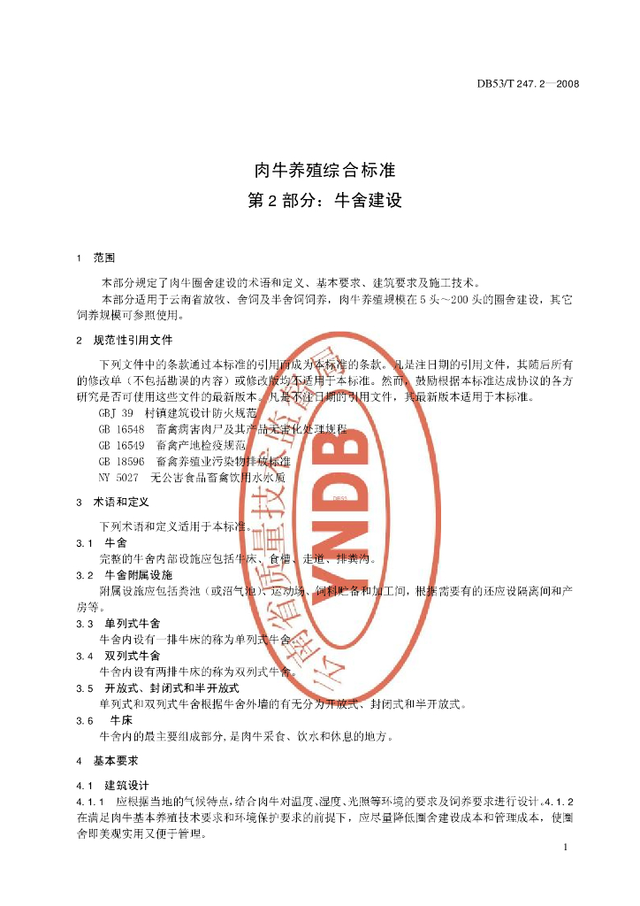 DB53/T 247.2-2008 肉牛养殖综合标准 第2部分:牛舍建设