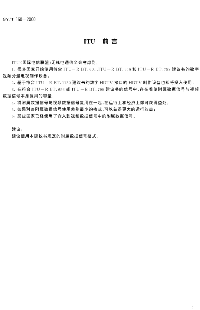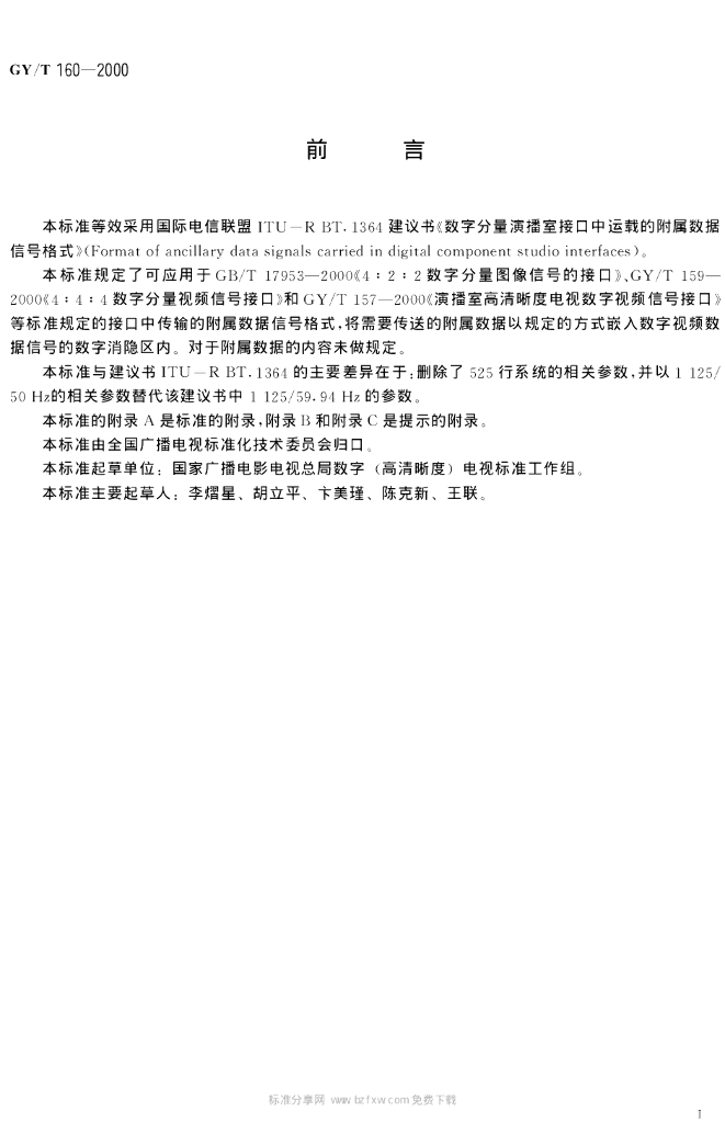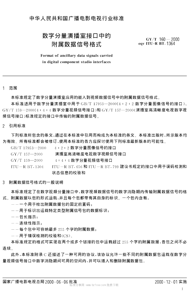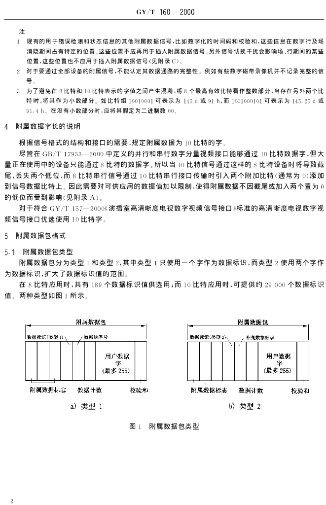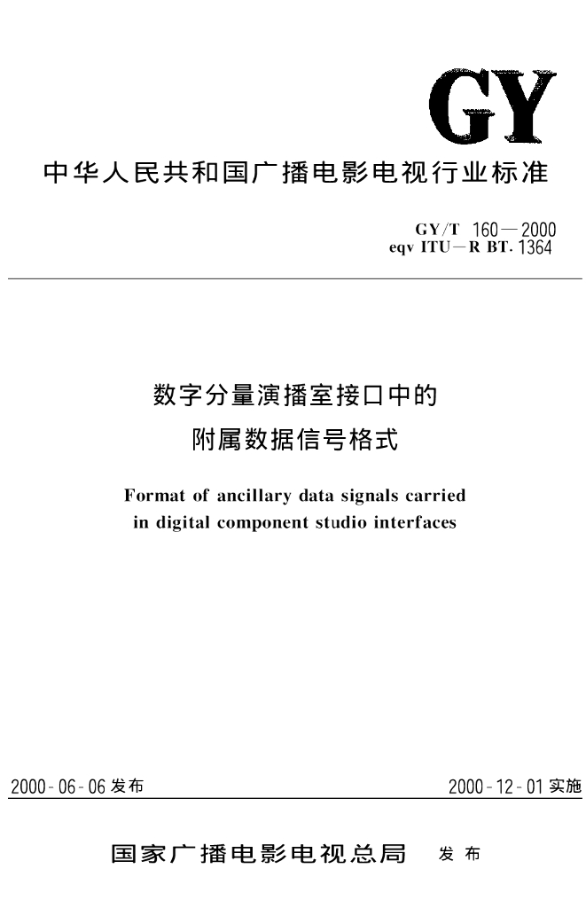GY/T 160-2000 数字分量演播室接口中的附属数据信号格式