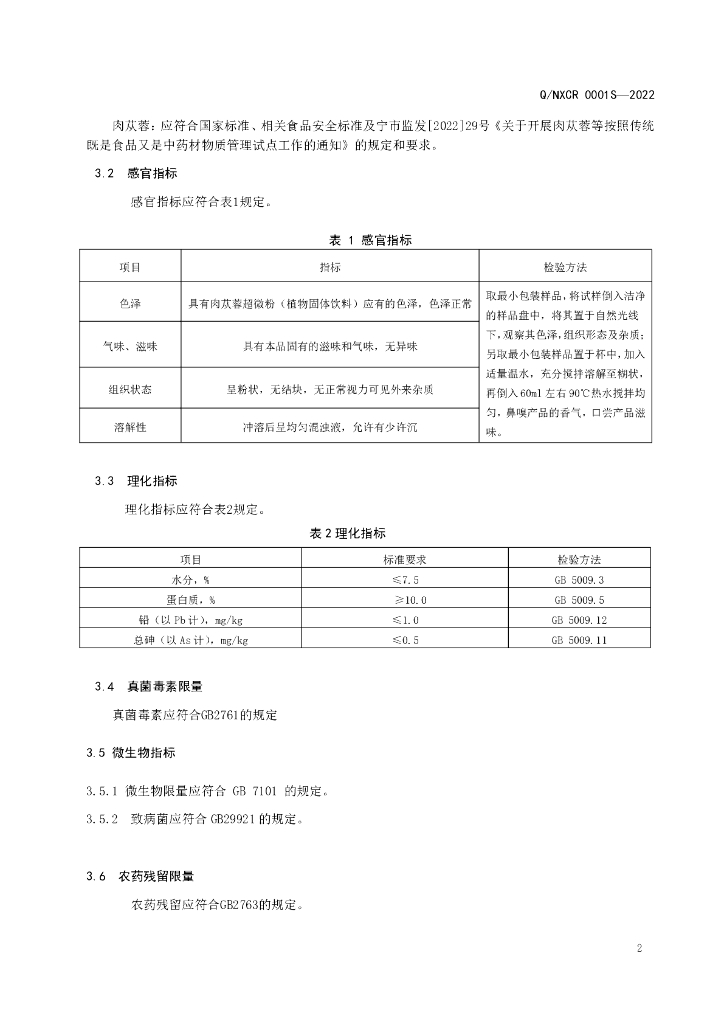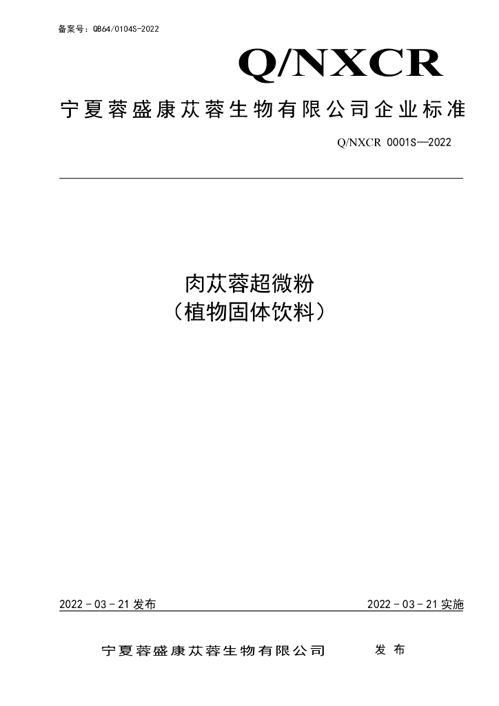 Q/NXCR 0001S-2022 肉苁蓉超微粉 (植物固体饮料)