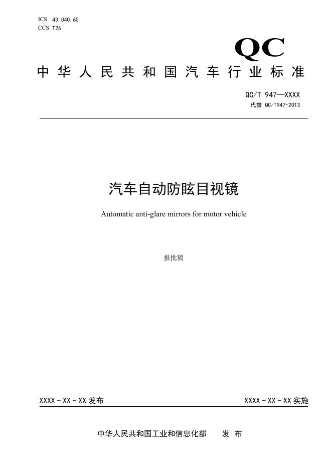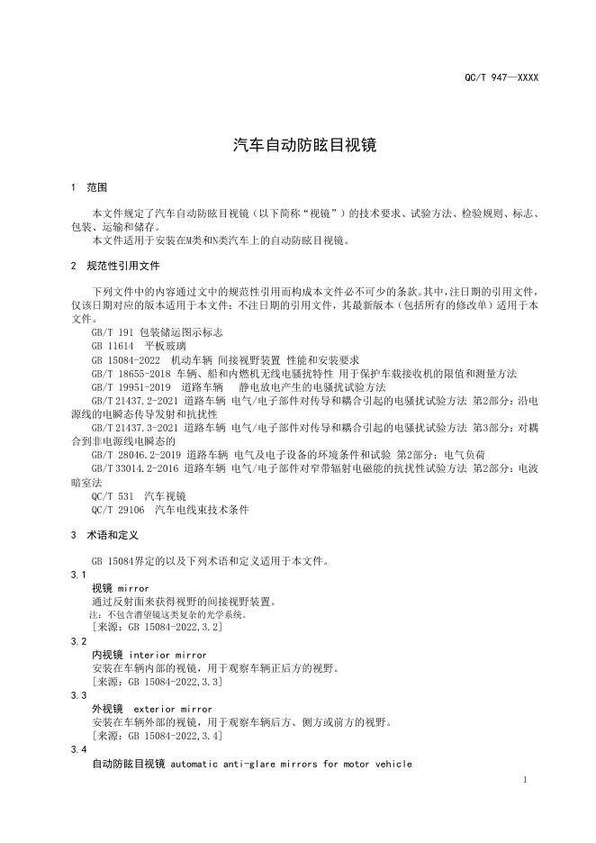 QC/T 947-2025 汽车自动防眩目视镜