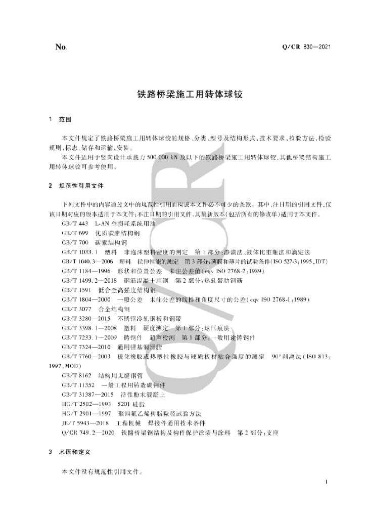 Q/CR 830-2021 铁路桥梁施工用转体球铰