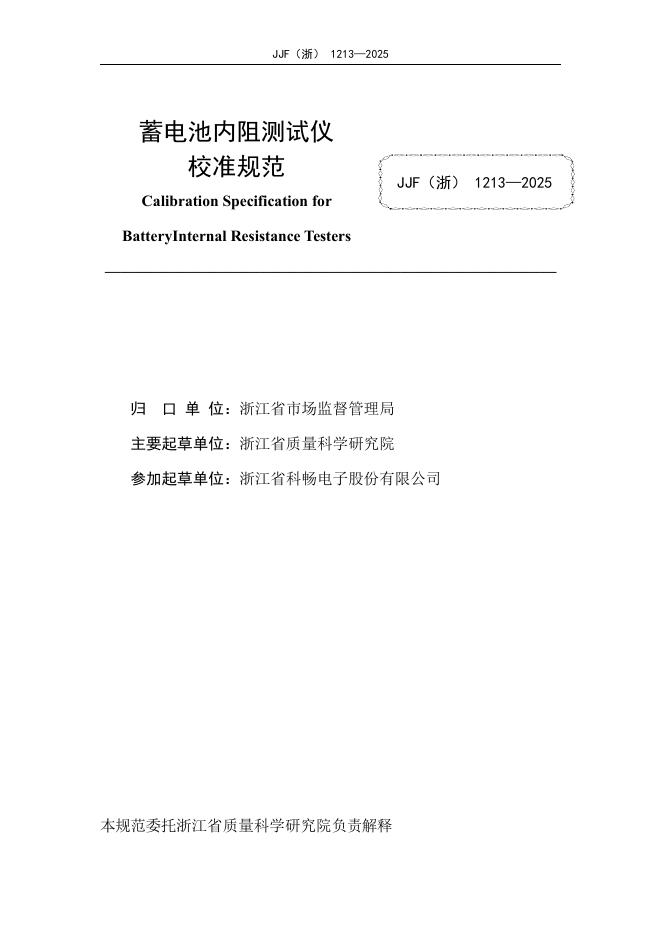 JJF(浙)1213-2025 蓄电池内阻测试仪校准规范