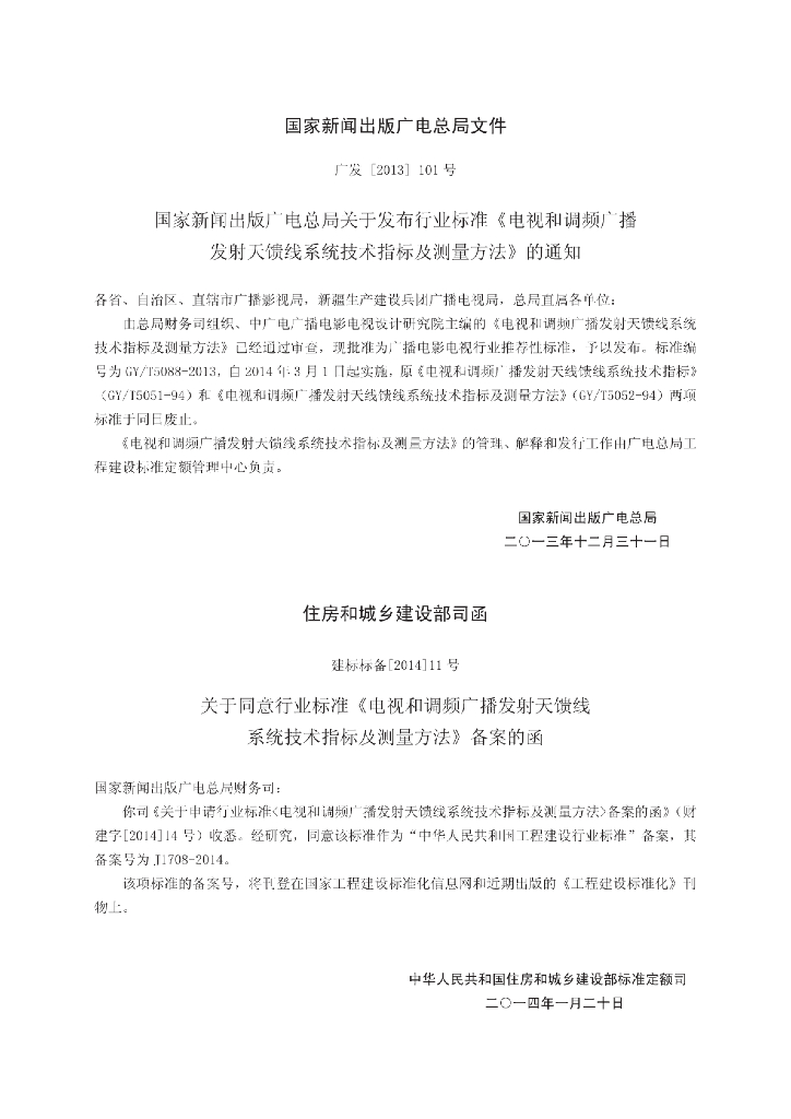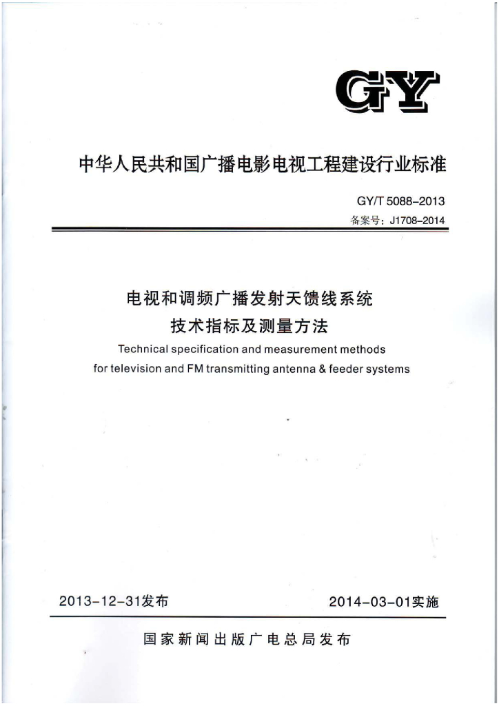GY/T 5088-2013 电视和调频广播发射天馈线系统技术指标及测量方法
