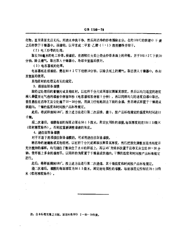 GB/T 1736-1979 绝缘漆漆膜制备法