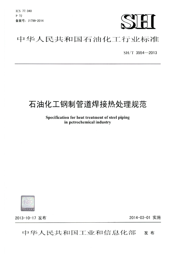 SH/T 3554-2013 石油化工钢制管道焊接热处理规范