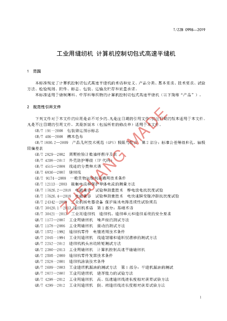 浙江新顺发缝纫机科技股份有限公司、西安标准工业股份有限公司、浙江美机缝纫机有限公司、浙江宝宇缝纫机有限公司、浙江杜马缝纫机股份有限公司、汇宝科技集团有限公司、浙江飞凤缝制设备有限公司、台州市标准化研究院、浙江省计量科学研究院