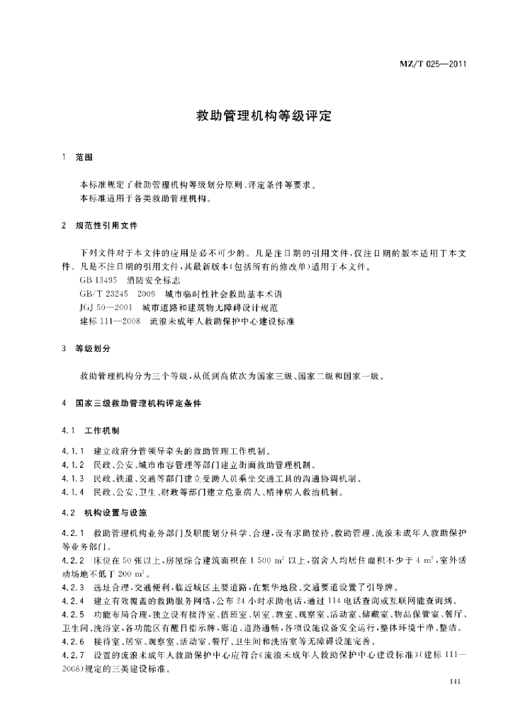 MZ/T 025-2011 救助管理机构等级评定