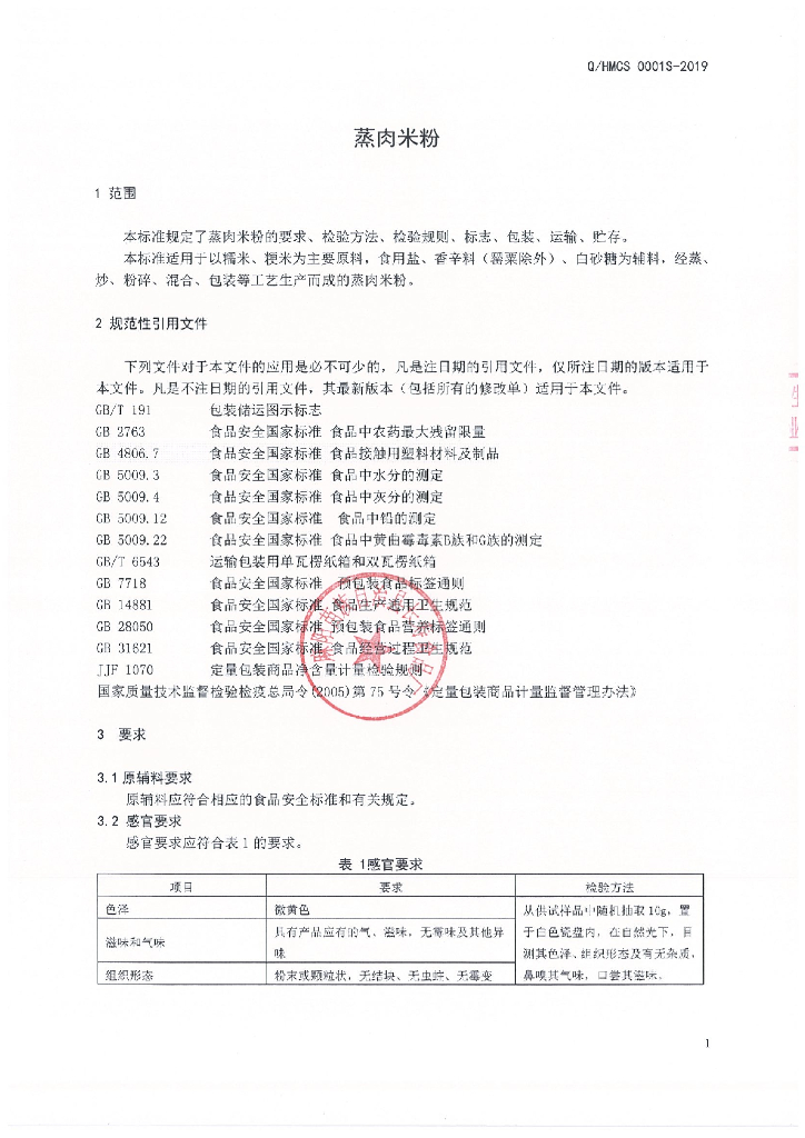 Q/HMCS 0001S-2019 蒸肉米粉