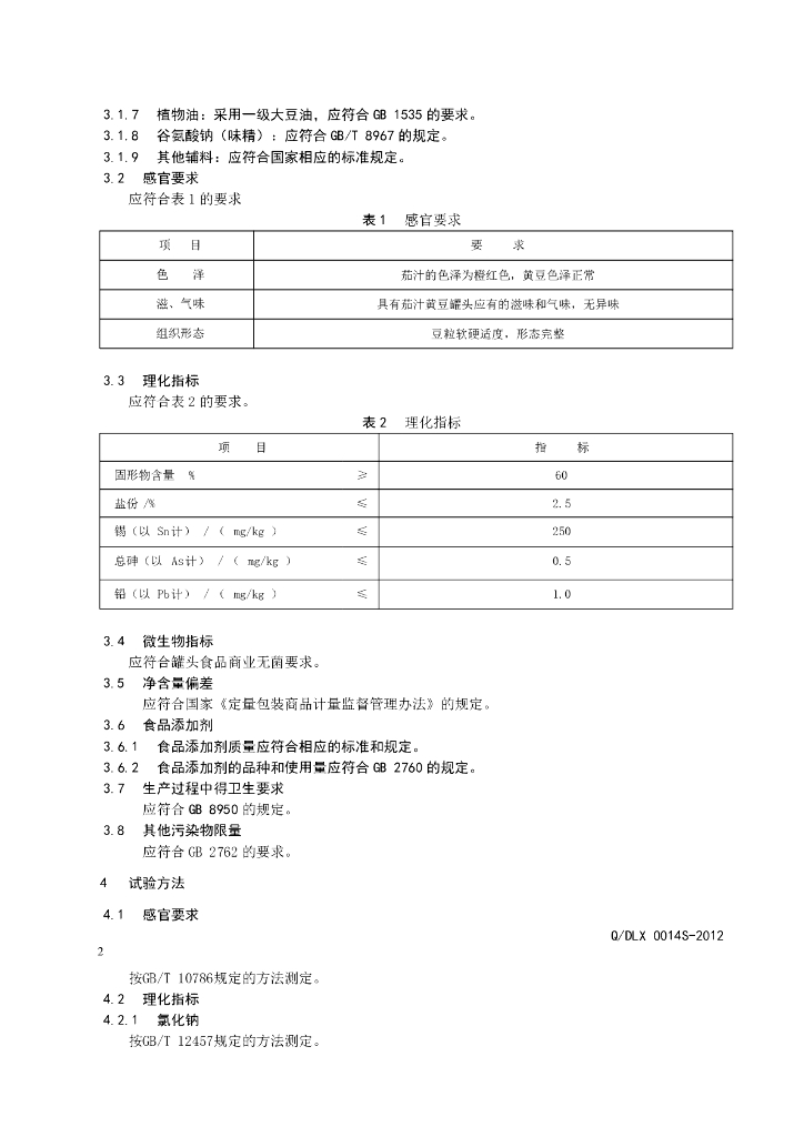 Q/DLX 0014S-2012 茄汁黄豆罐头