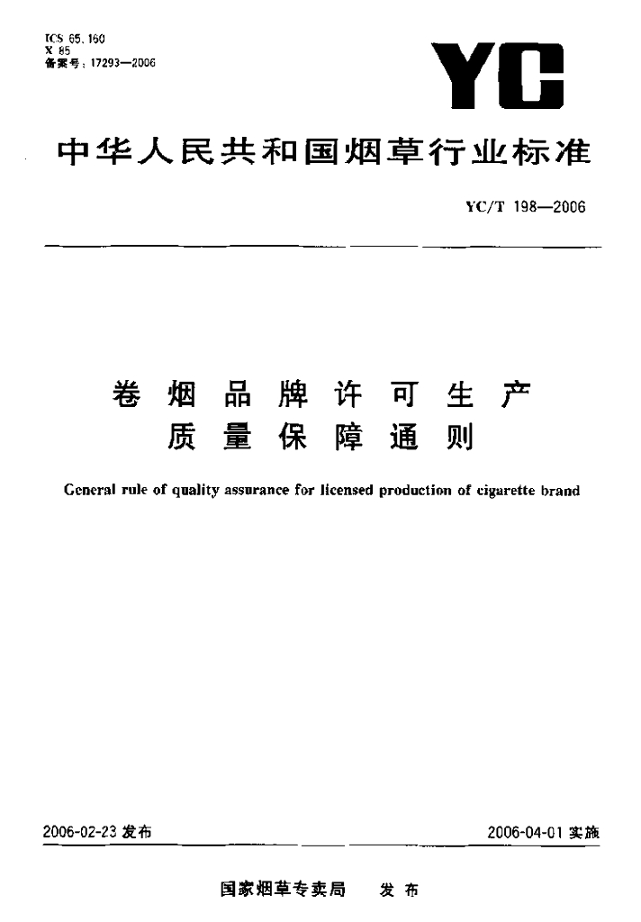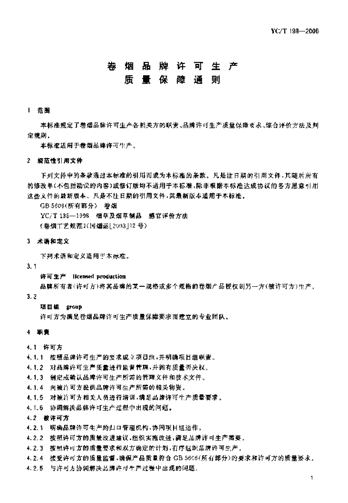 YC/T 198-2006 卷烟品牌许可生产质量保障通则