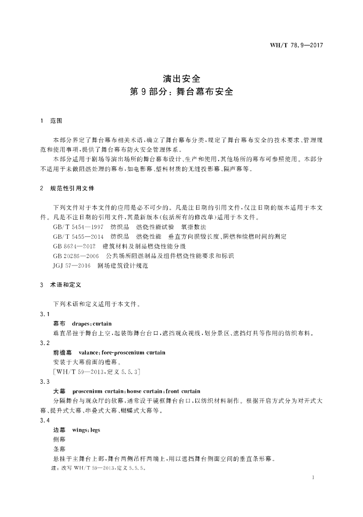 WH/T 78.9-2017 演出安全 第9部分:舞台幕布安全