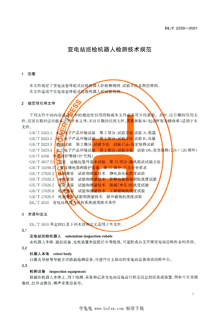 DL/T 2239-2021 变电站巡检机器人检测技术规范