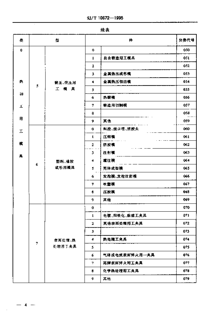 SJ/T 10672-1995 电子工业用工艺装备分类编号