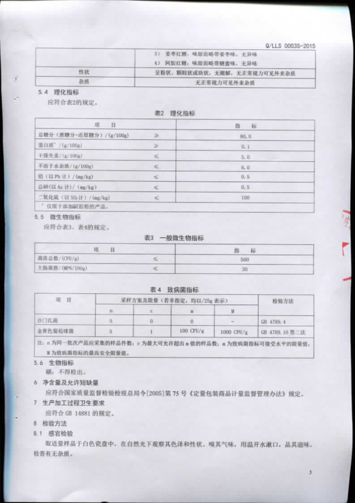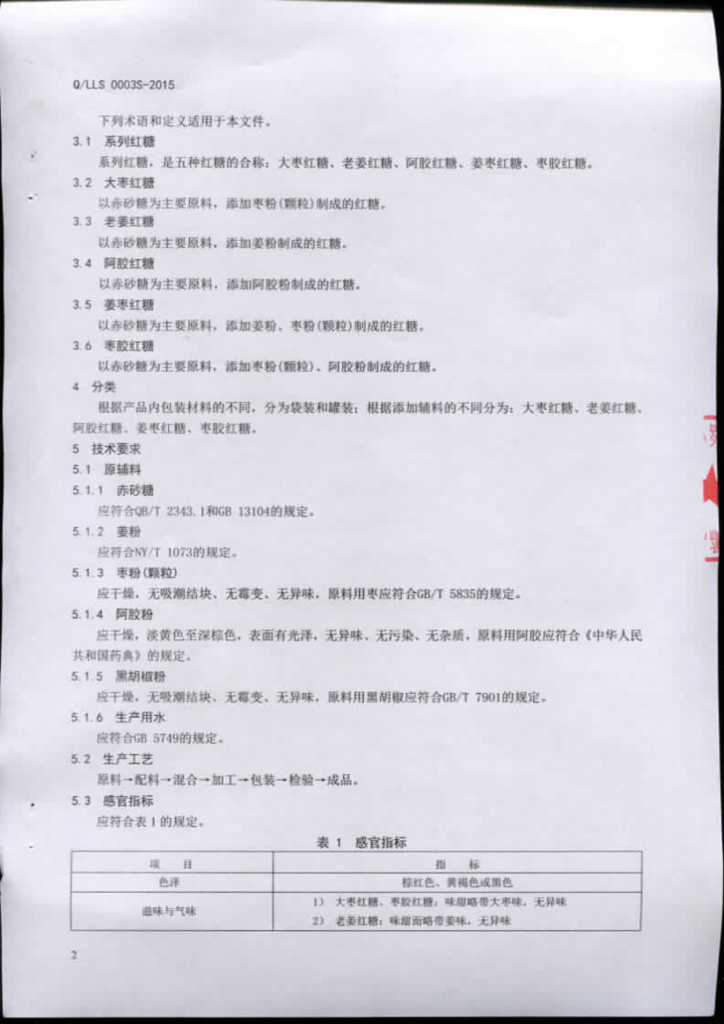Q/LLS 0003S-2015 临沂市陆洪旗食品配送中心罗庄分部 系列红糖