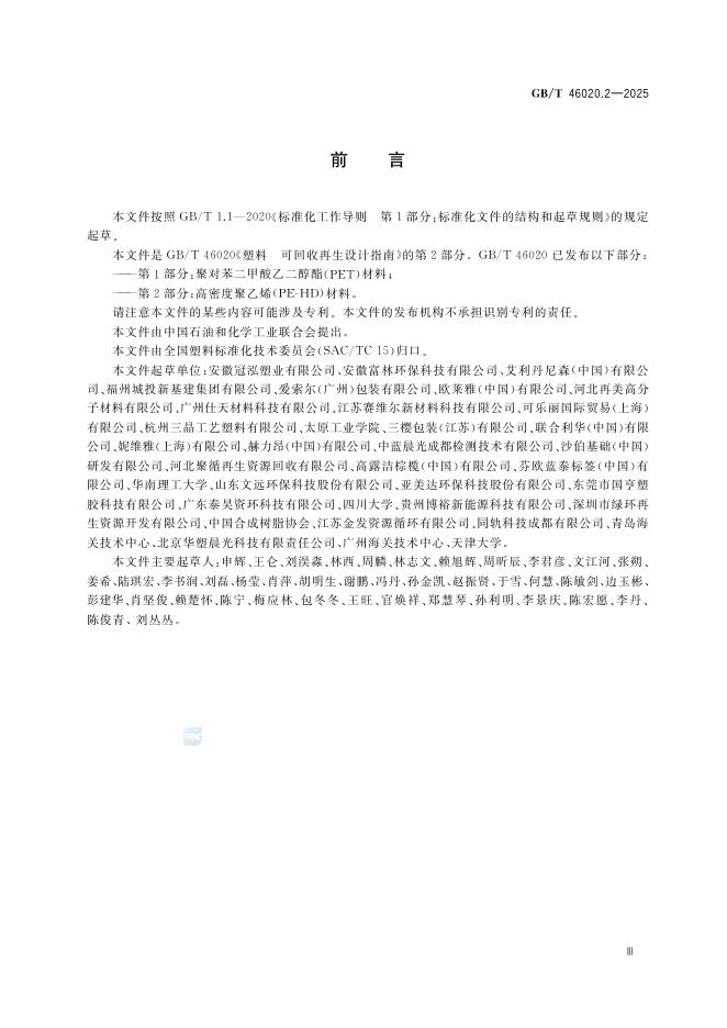 GB/T 46020.2-2025 塑料 可回收再生设计指南 第2部分:高密度聚乙烯(PE-HD)材料