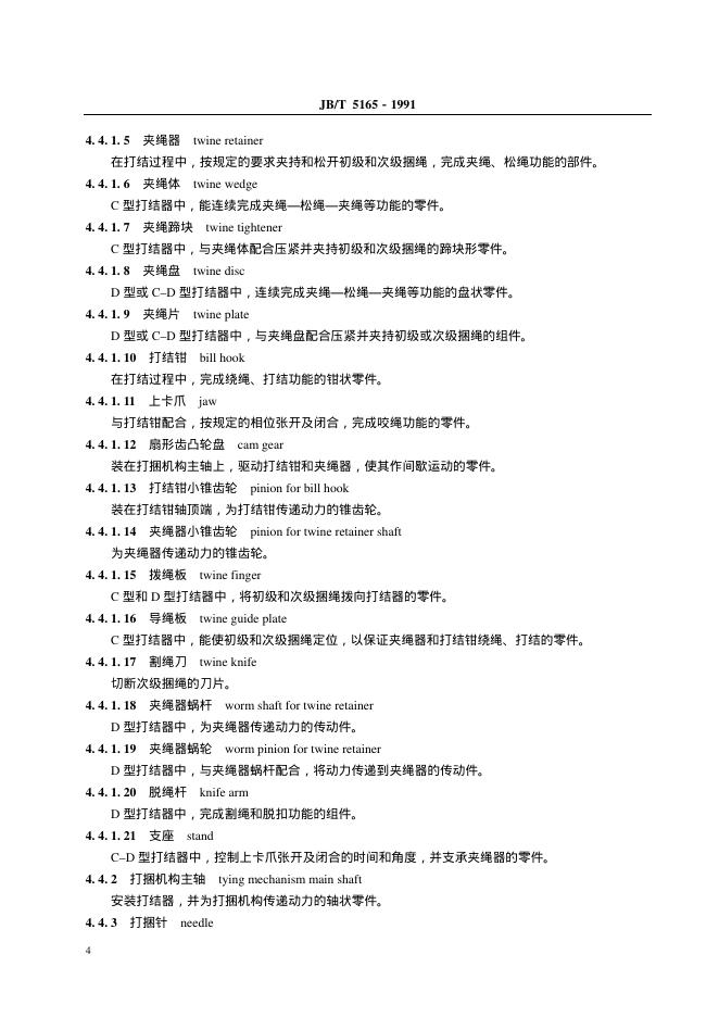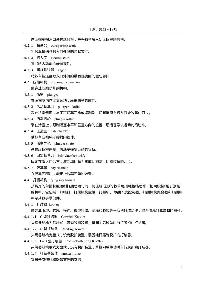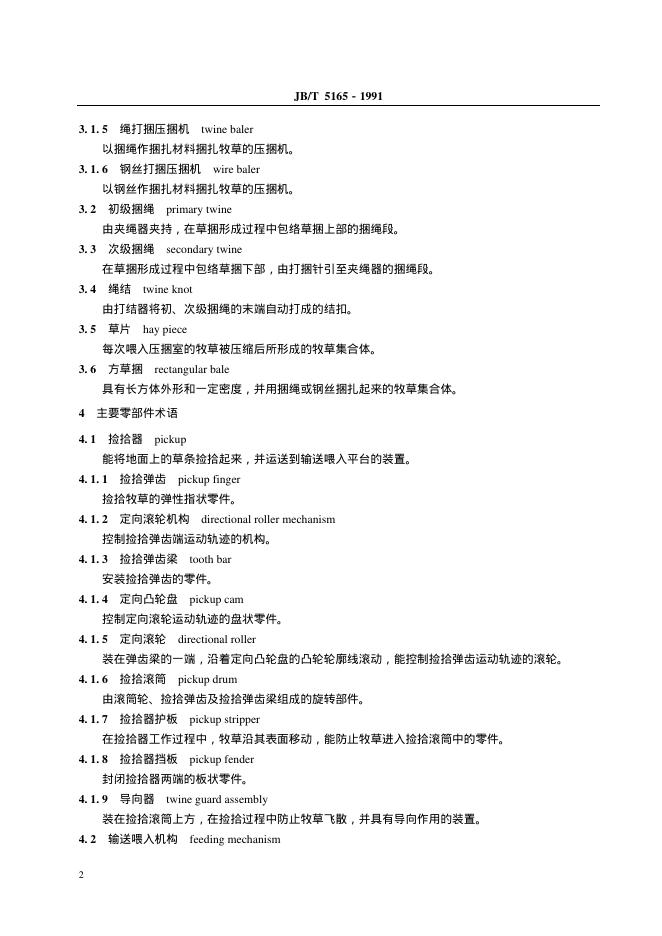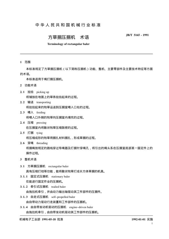 JB/T 5165-1991 方草捆压捆机 术语