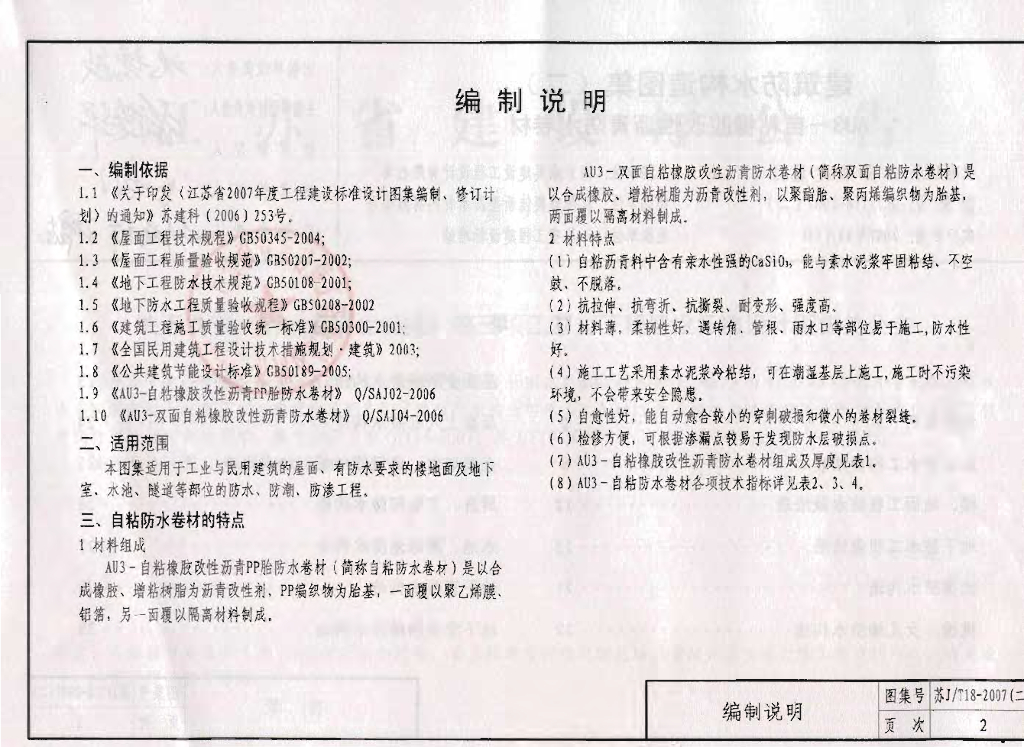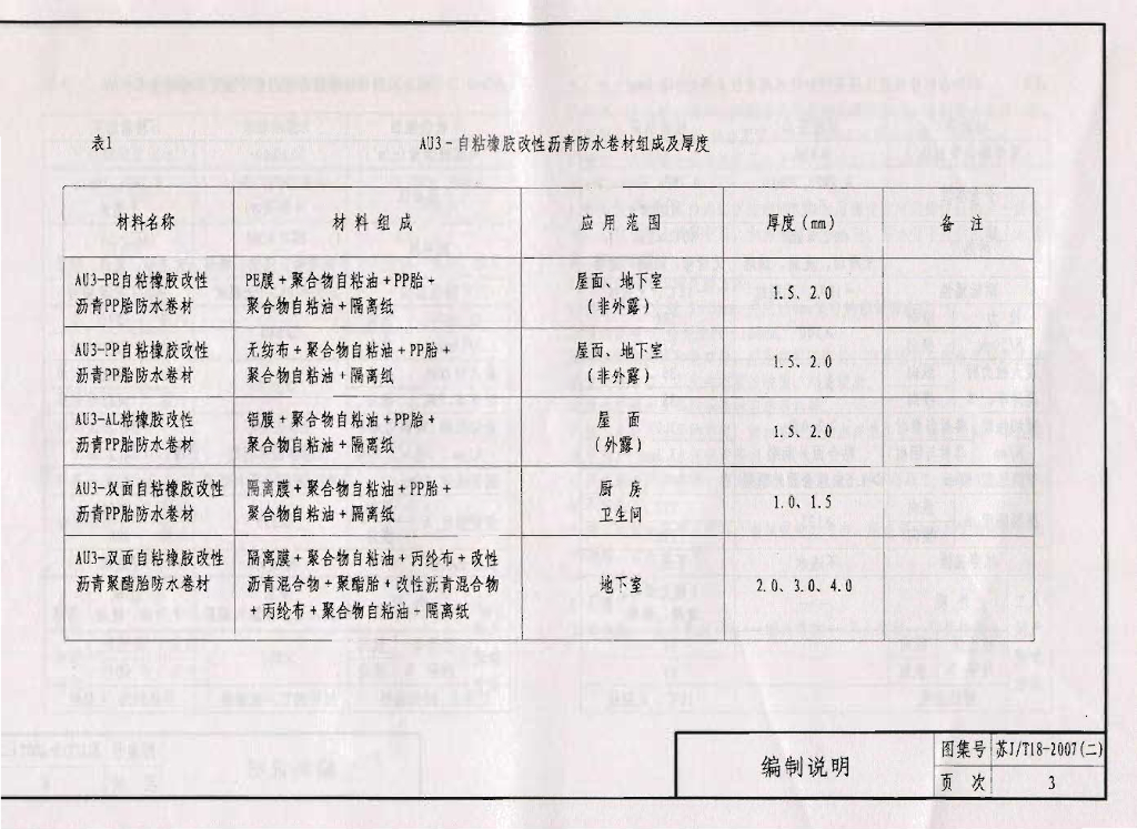 苏J/T18-2007(二) 建筑防水构造图集(二)AU3-自粘橡胶改性沥青防水卷材