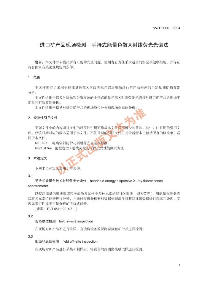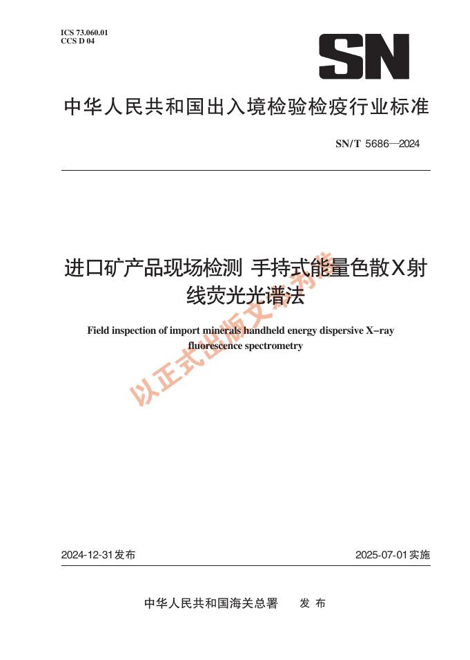 SN/T 5686-2024 进口矿产品现场检测 手持式能量色散X射线荧光光谱法