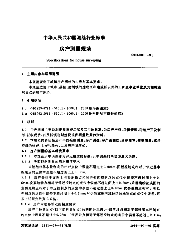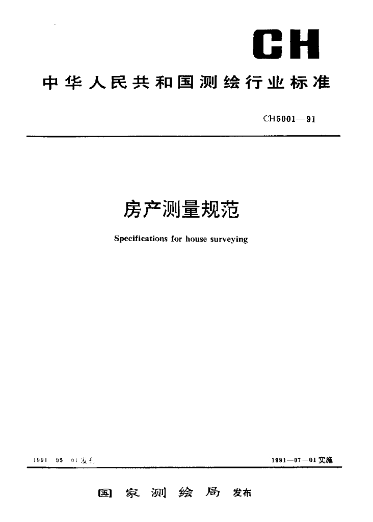 CH 5001-1991 房地测量规范