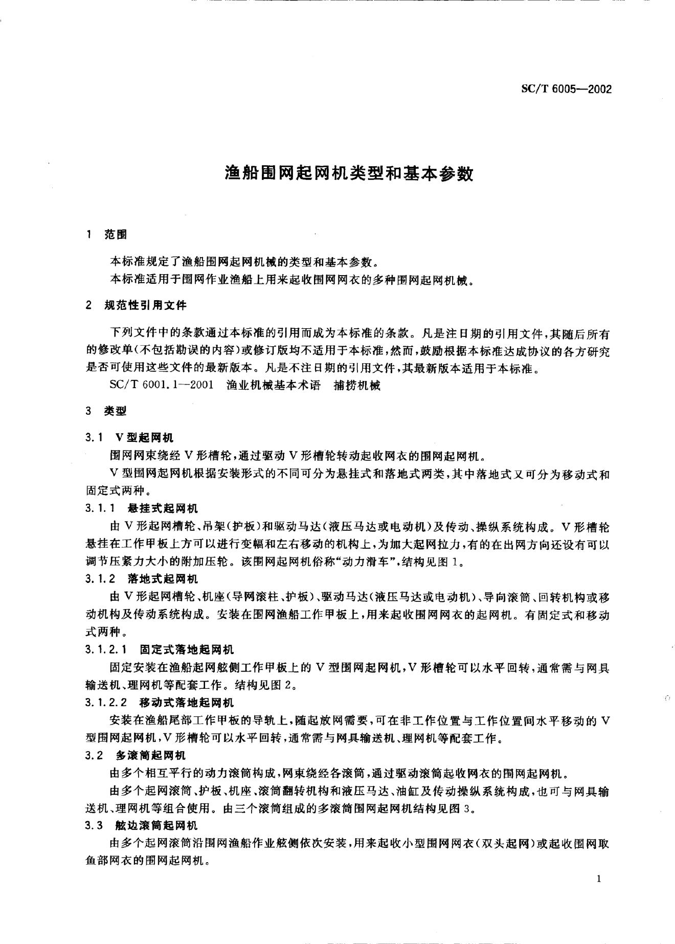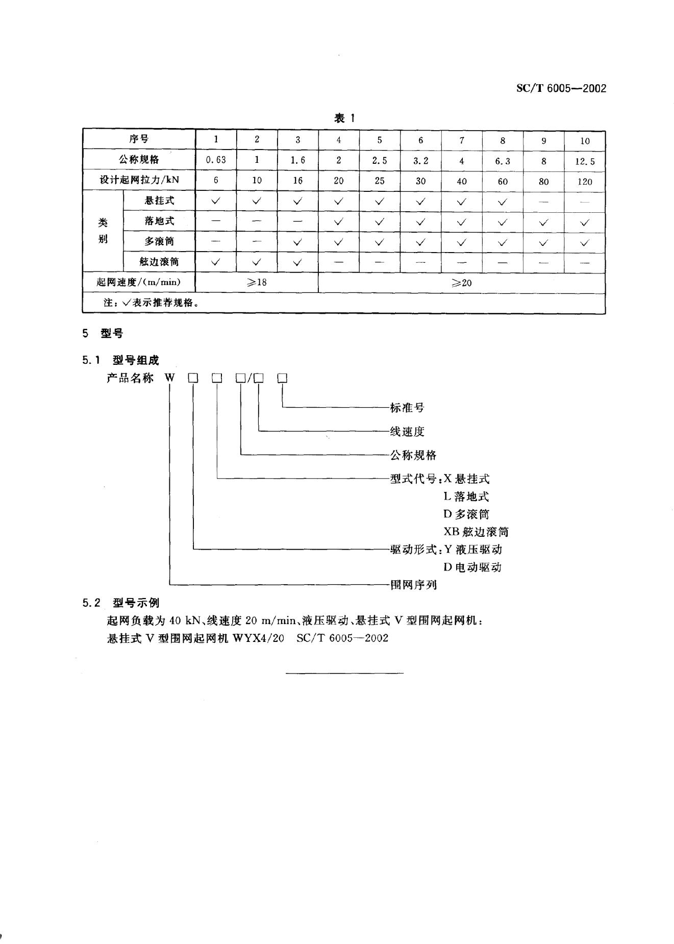 SC/T 6005-2002 渔船围网起网机类型和基本参数