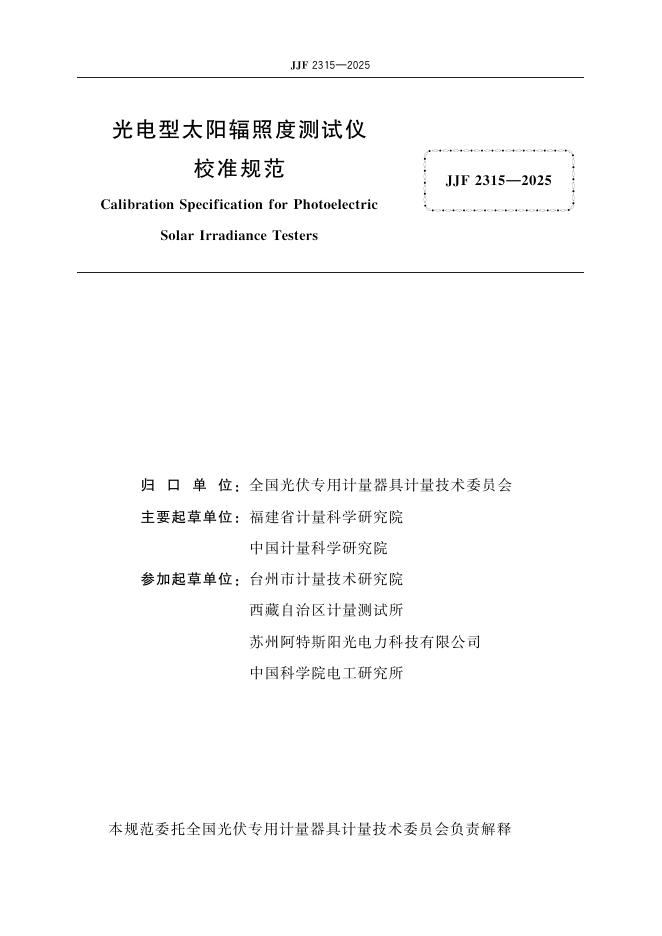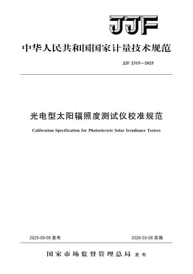 JJF 2315-2025 光电型太阳辐照度测试仪校准规范