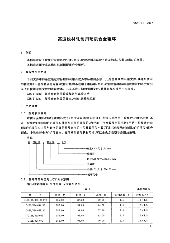 YS/T 61-2007 高速线材轧制用硬质合金辊环