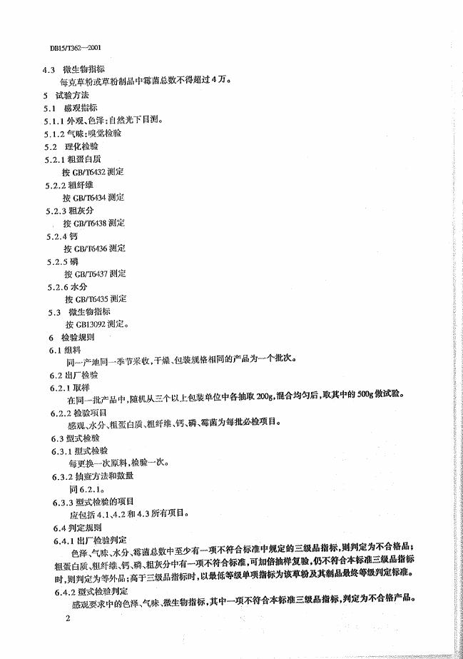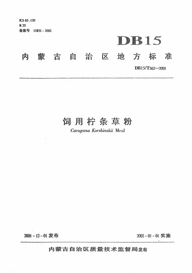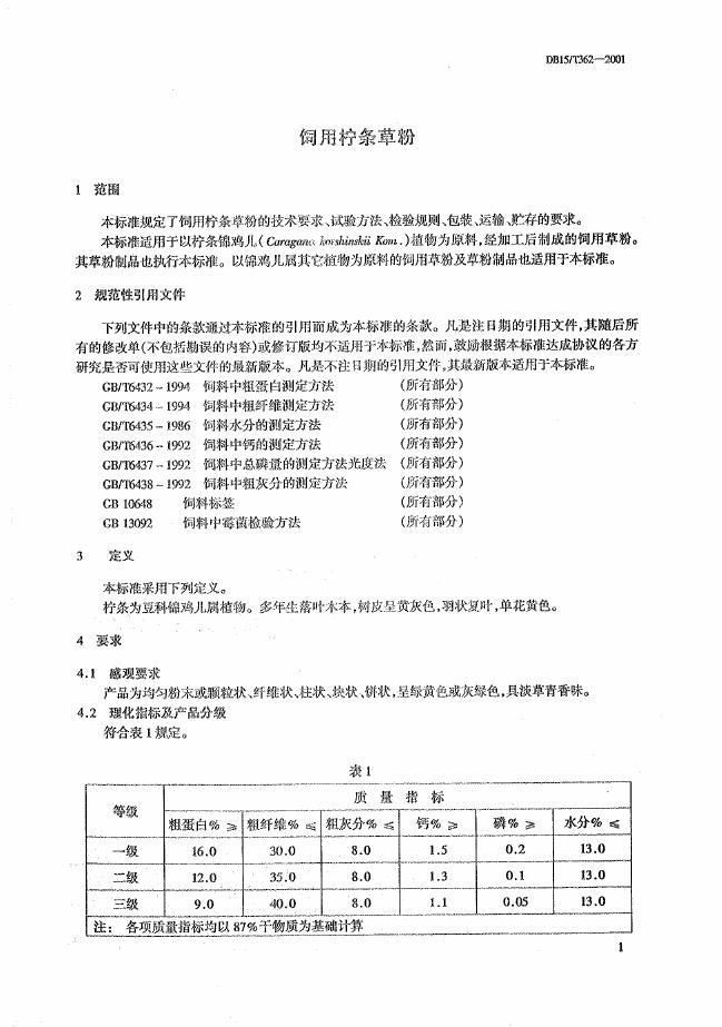 DB15/T 362-2001 饲用柠条草粉