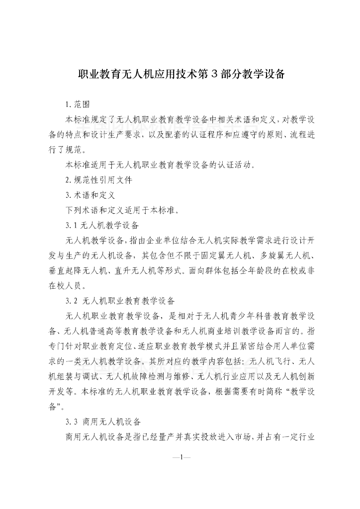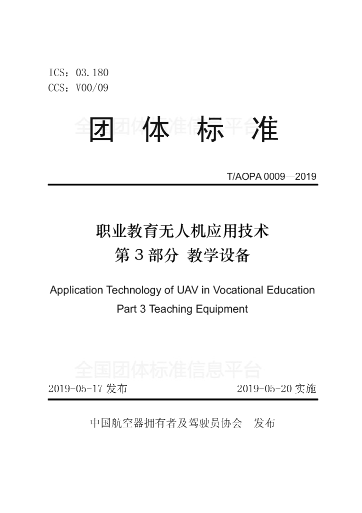 T/AOPA 0009-2019 职业教育无人机应用技术 第3部分 教学设备