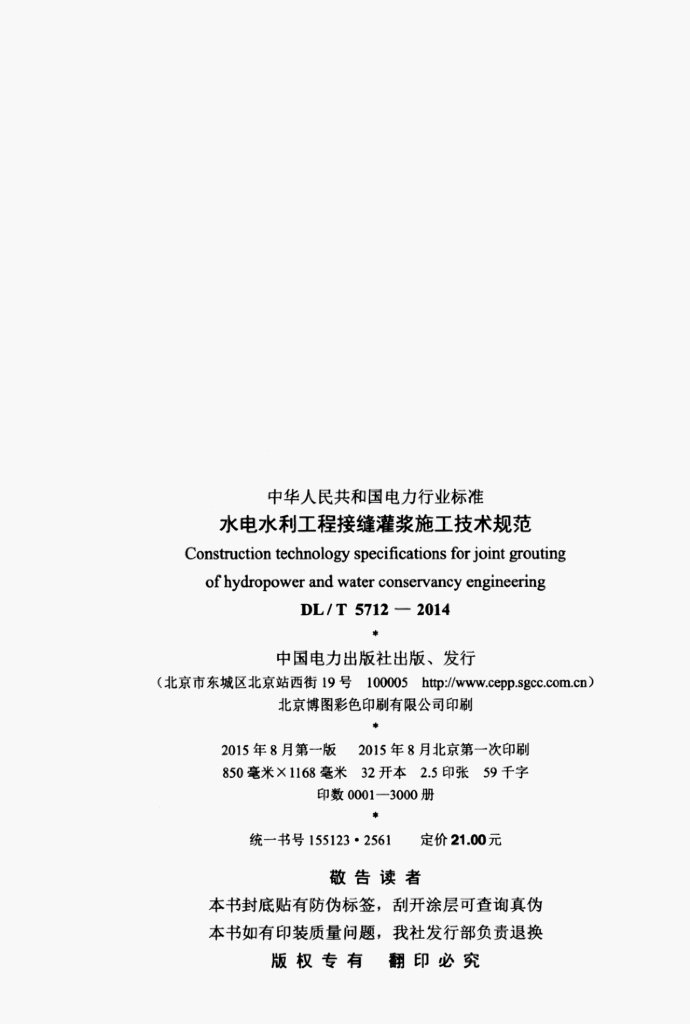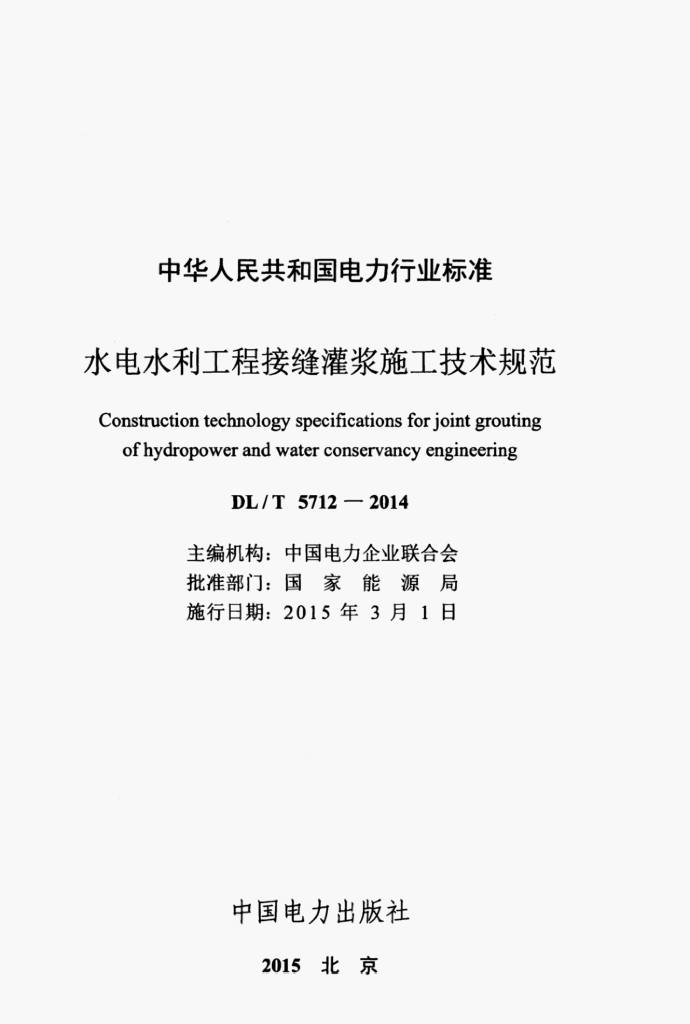 DL/T 5712-2014 水电水利工程接缝灌浆施工技术规范