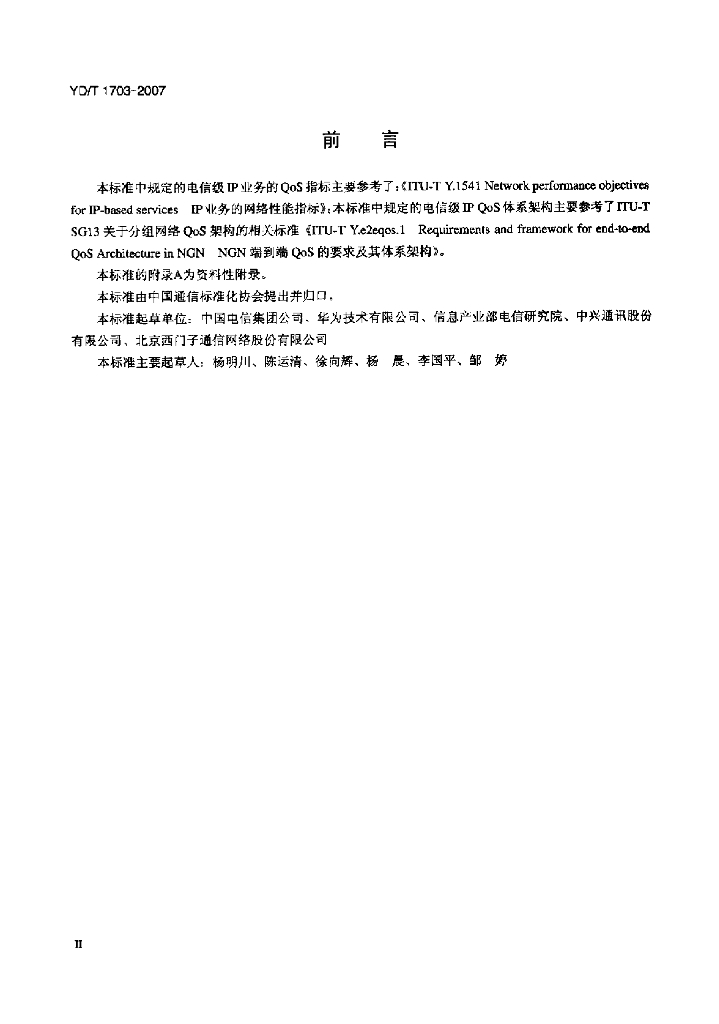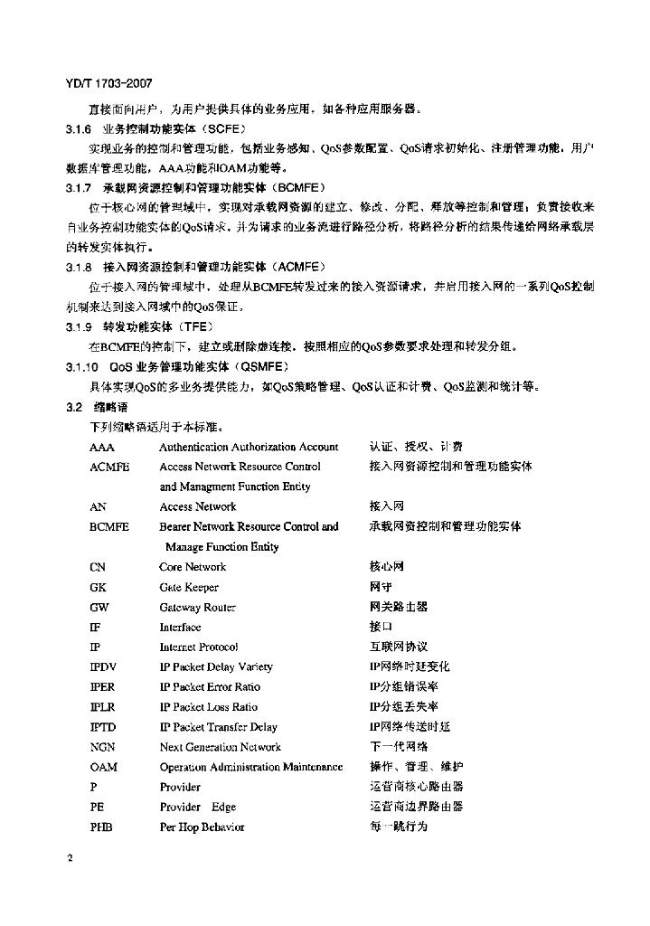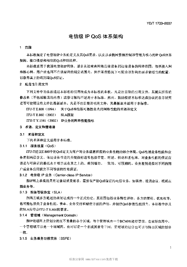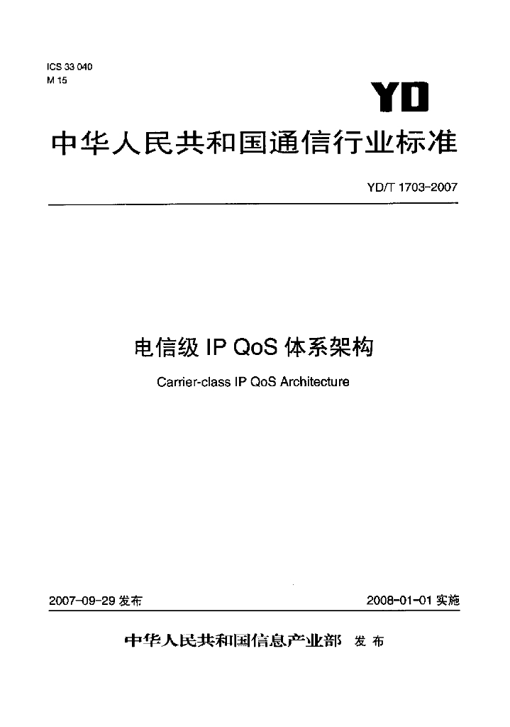 YD/T 1703-2007 电信级 IP QoS 体系架构
