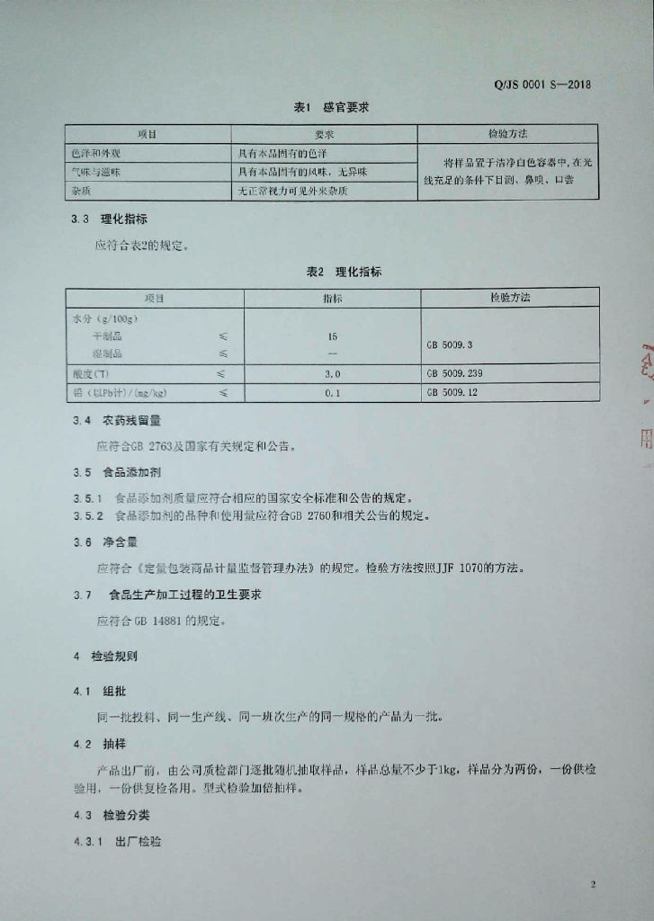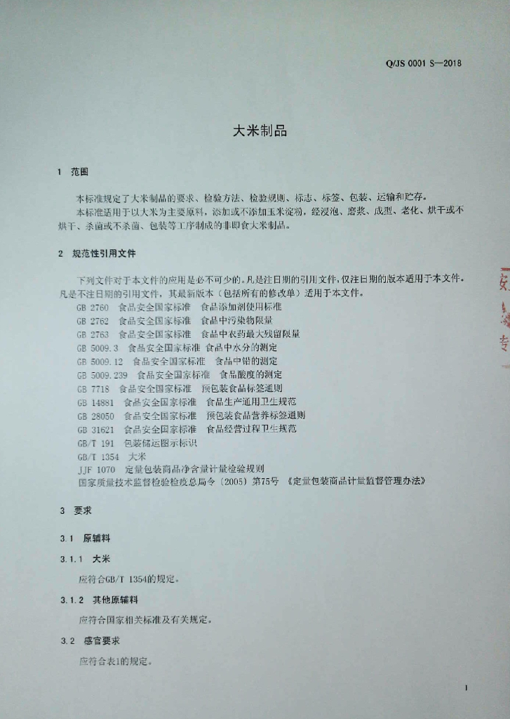 Q/JS 0001S-2018 大米制品