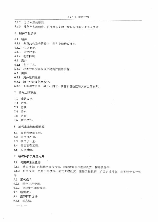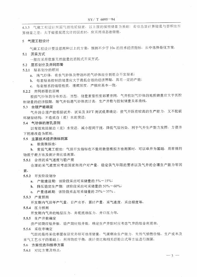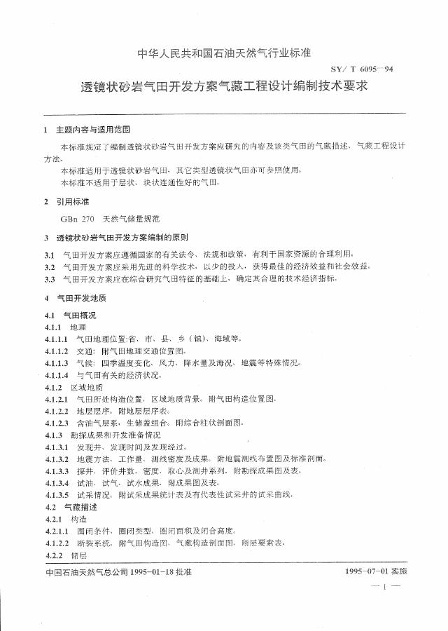 SY/T 6095-1994 透镜状砂岩气田开发方案气藏工程 设计编制技术要求