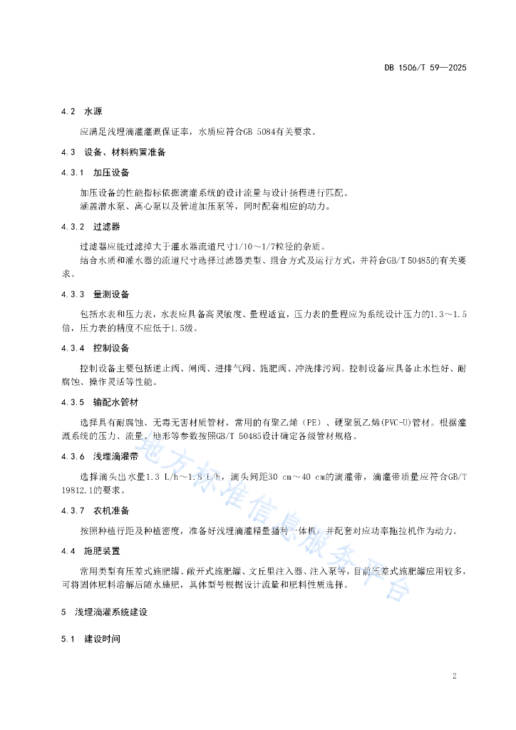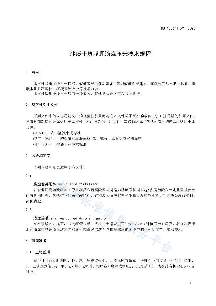 DB1506/T 59-2025 沙质土壤浅埋滴灌玉米技术规程