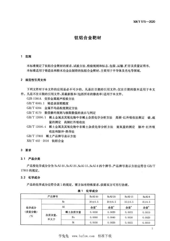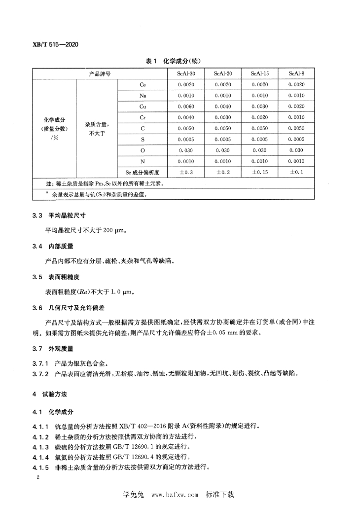 XB/T 515-2020 钪铝合金靶材